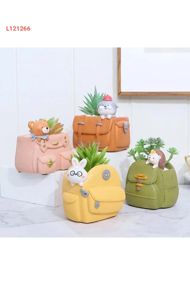مجموعة فلورادا 4 قطع من الأكياس اللطيفة وأواني السوكولنت مع حامل تقديم