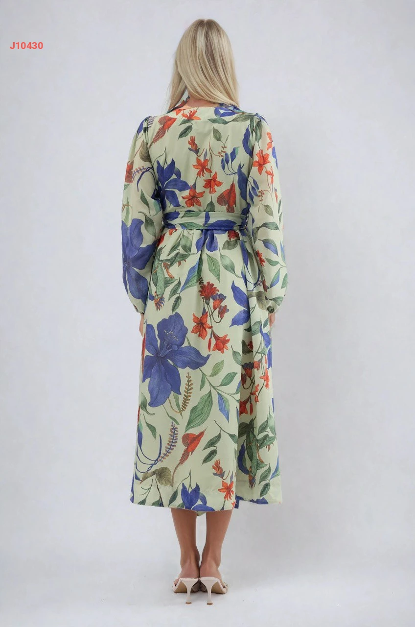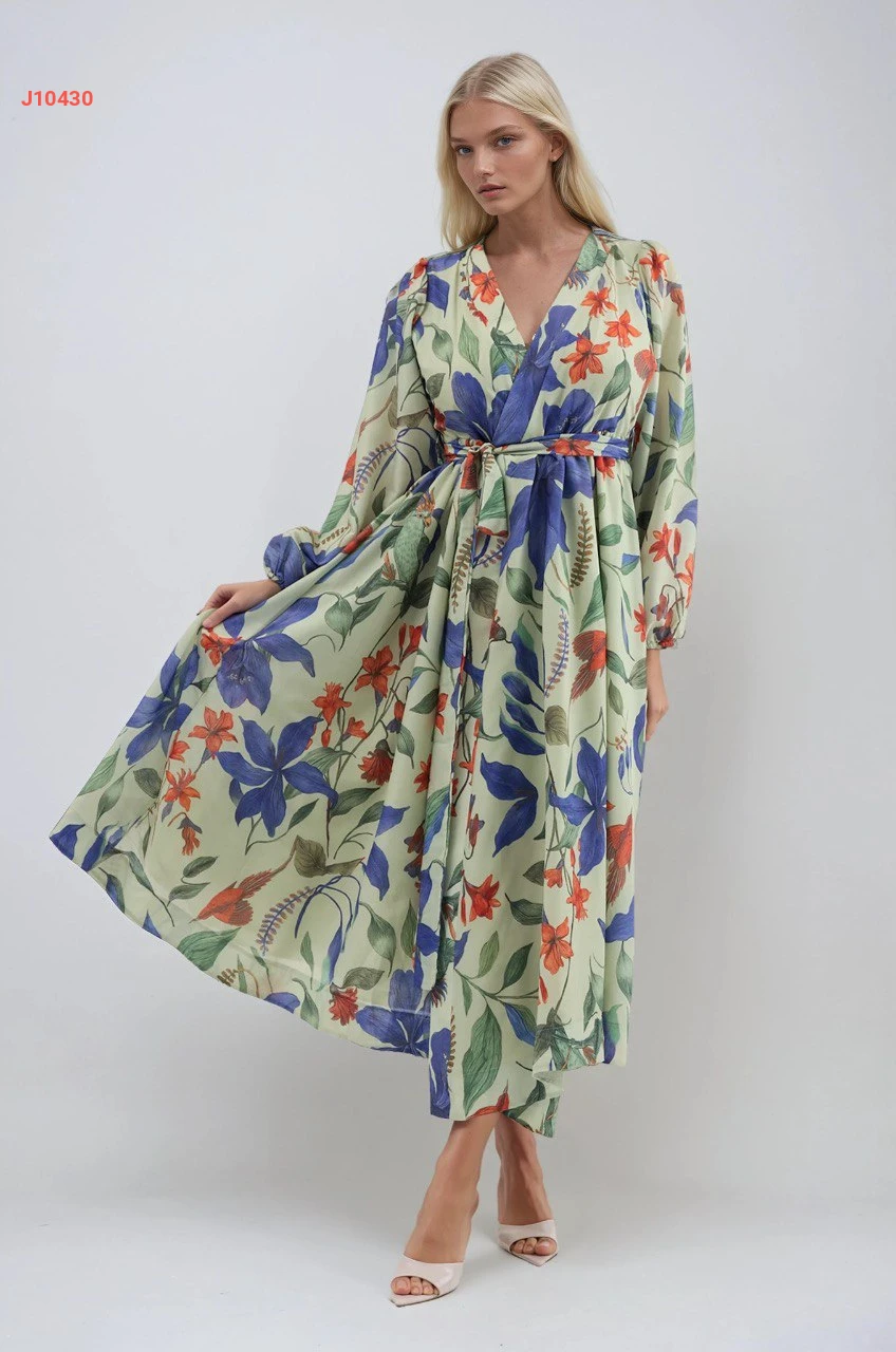 فستان منقوش ورد مع زنار