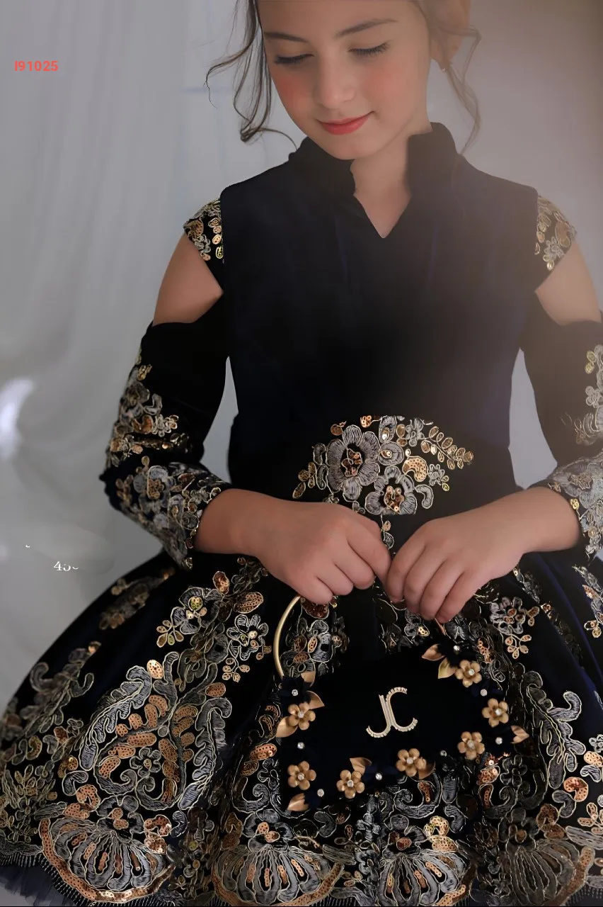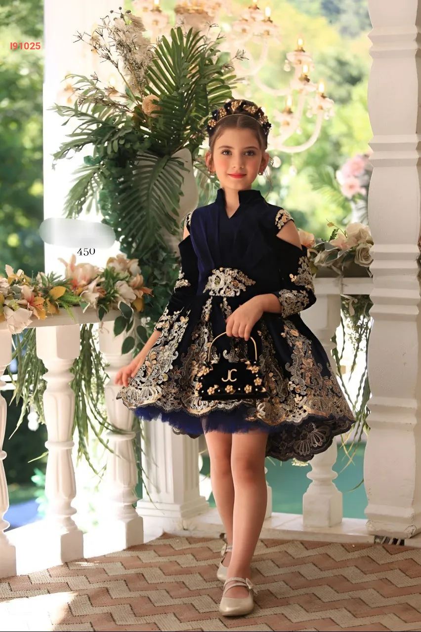 فستان بناتي مكلف مخمل مع حقي...