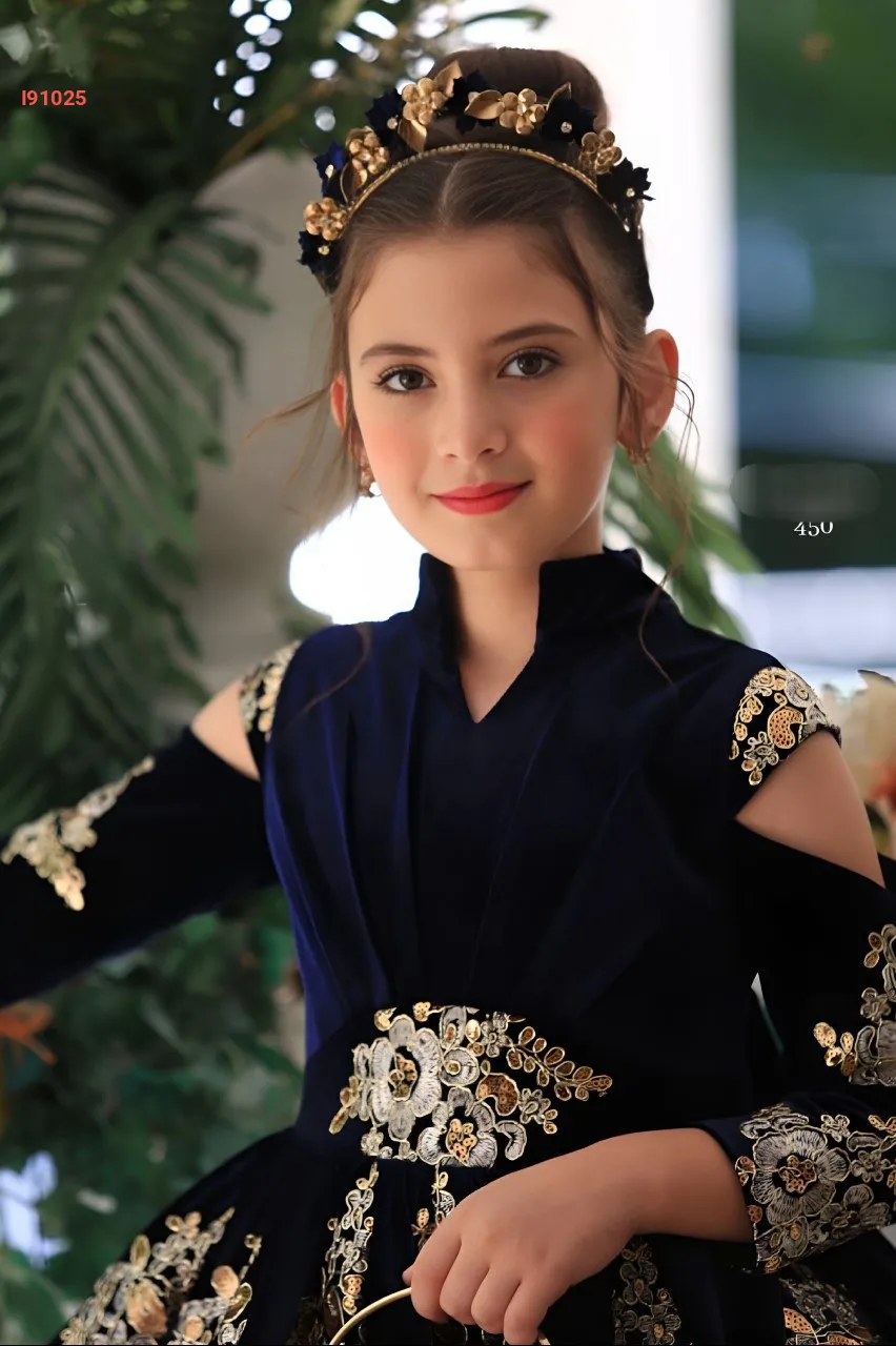 فستان بناتي لميع ومخمل بأكما...