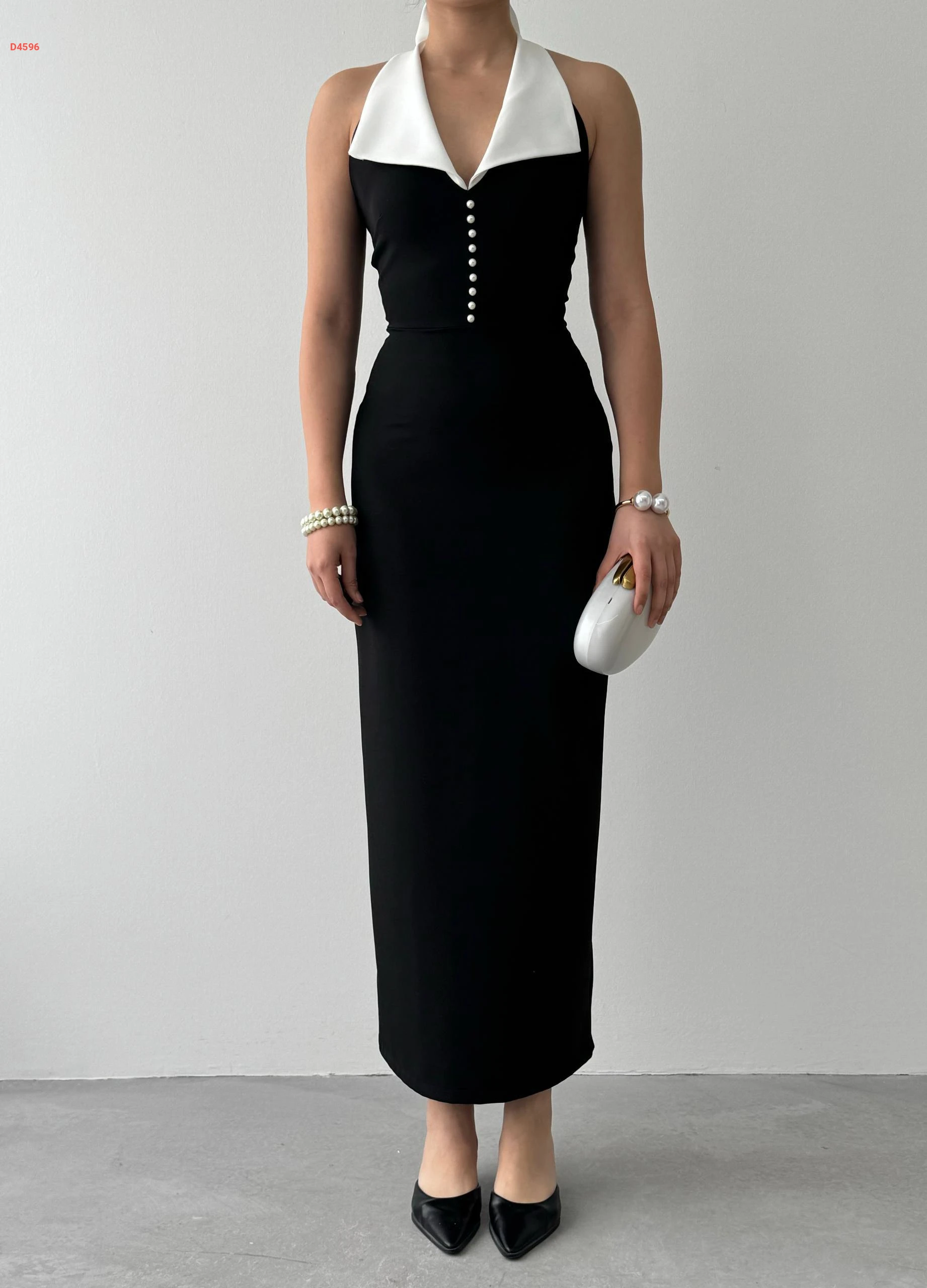 فستان رسمي مكشوف الظهر باكسسوار