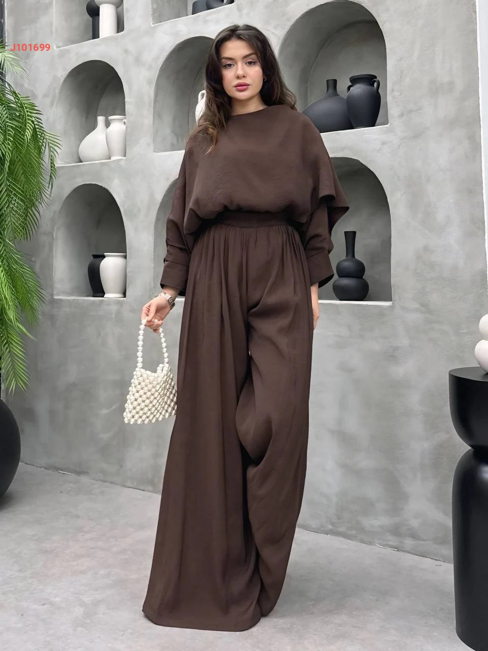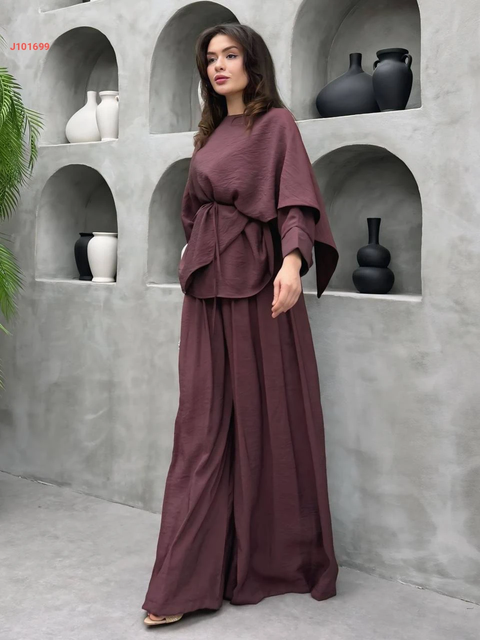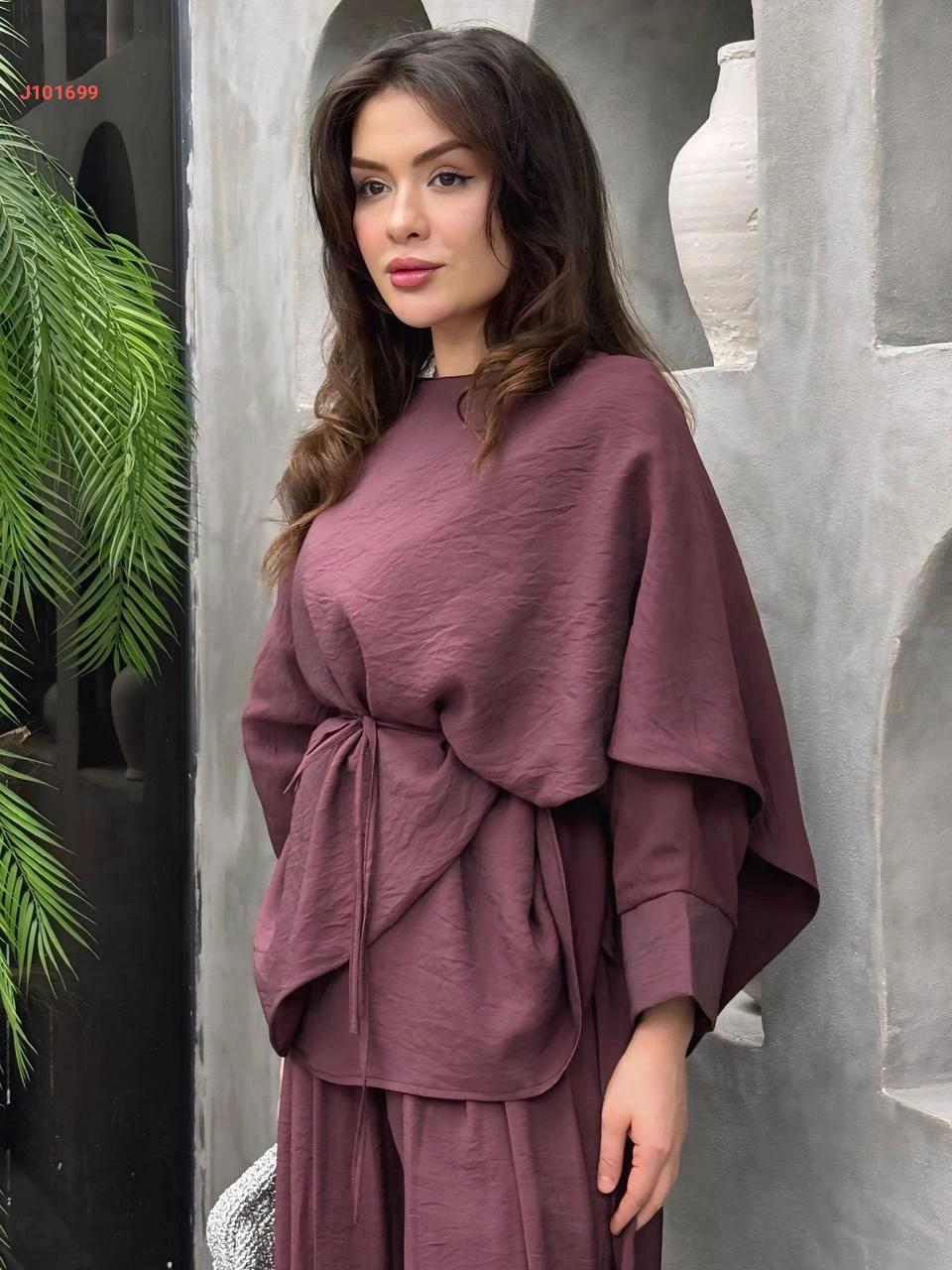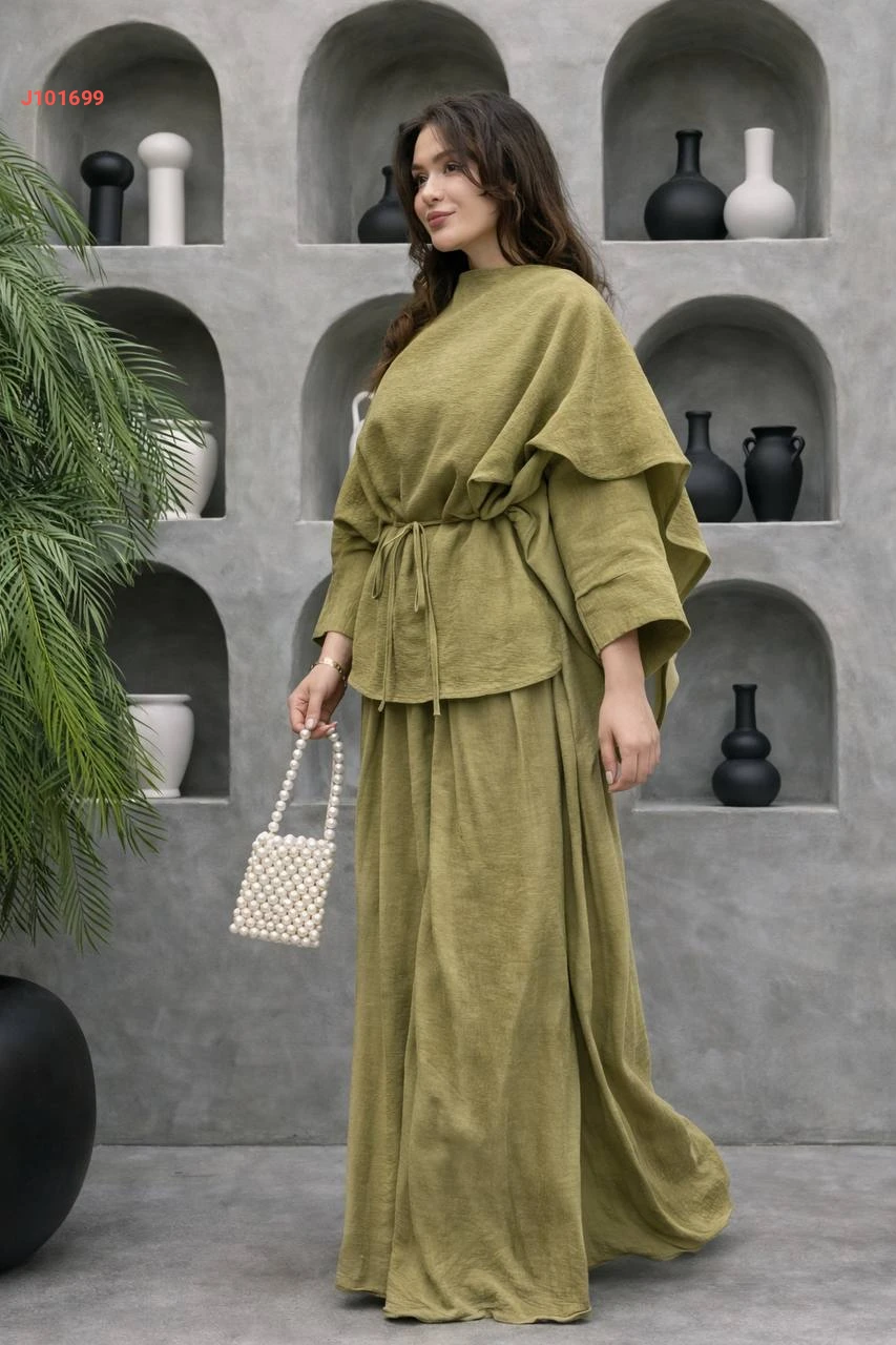 طقم بنطال فوال وبلوزة كشكش بزنار