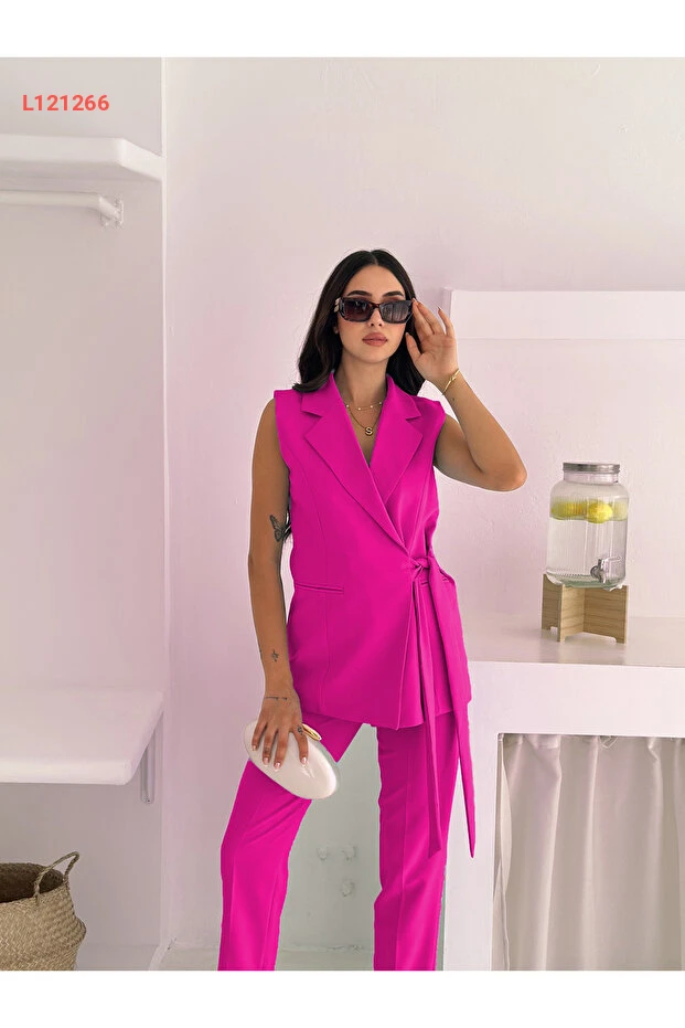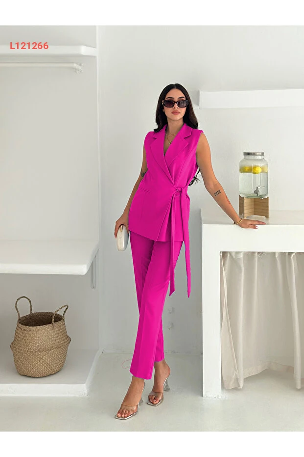 استمتع بأناقة لا مثيل لها مع طقم diaves المكوّن من سترة بلون الفوشيا وبنطال حوّاج خصر محدد. يتميز هذا الطقم القطني بجودته العالية وتصميمه العصري، مما يمنحك مظهرًا أنيقًا ومريحًا في جميع المناسبات. اجعلي كل لحظة تتألقين فيها بتفاصيله الفريدة وقصته المتقنة!