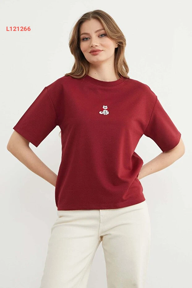 تيشرت بيسيكلت بيكا الناعمة بتطريز قطة من فولا مودا