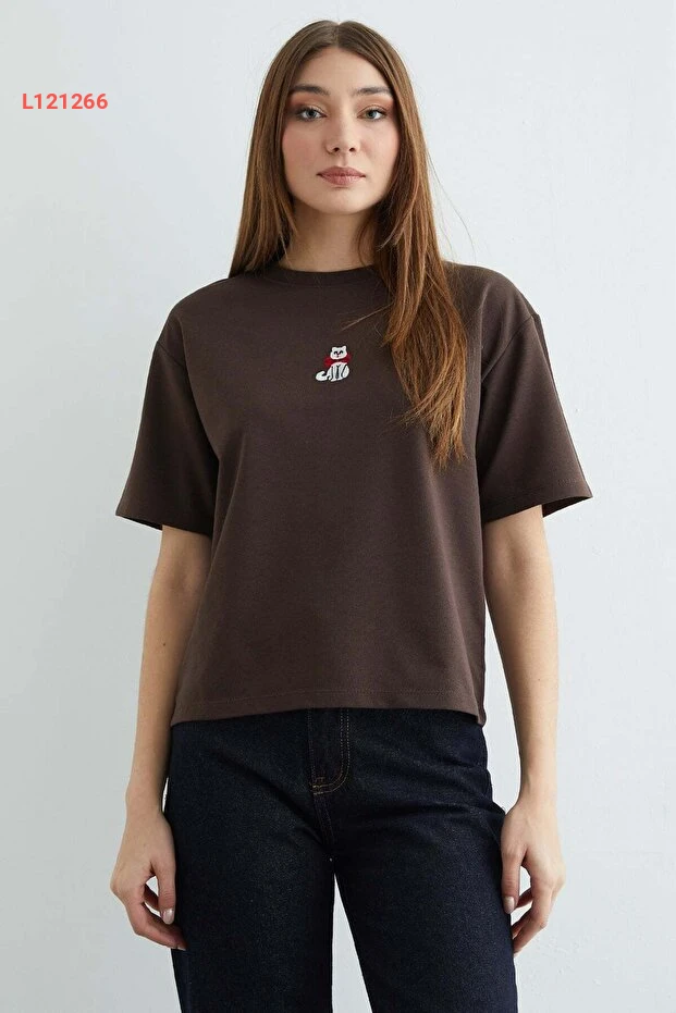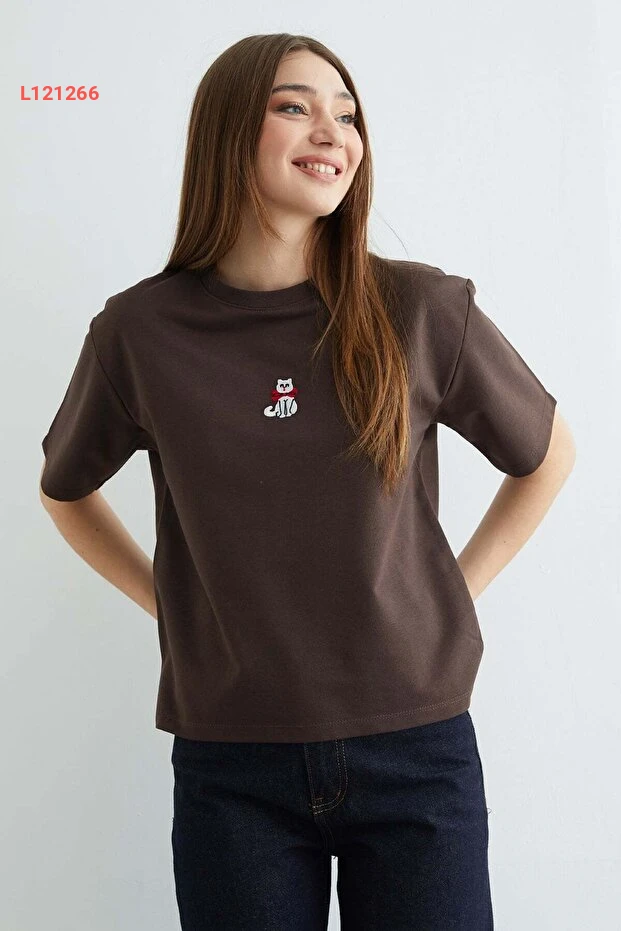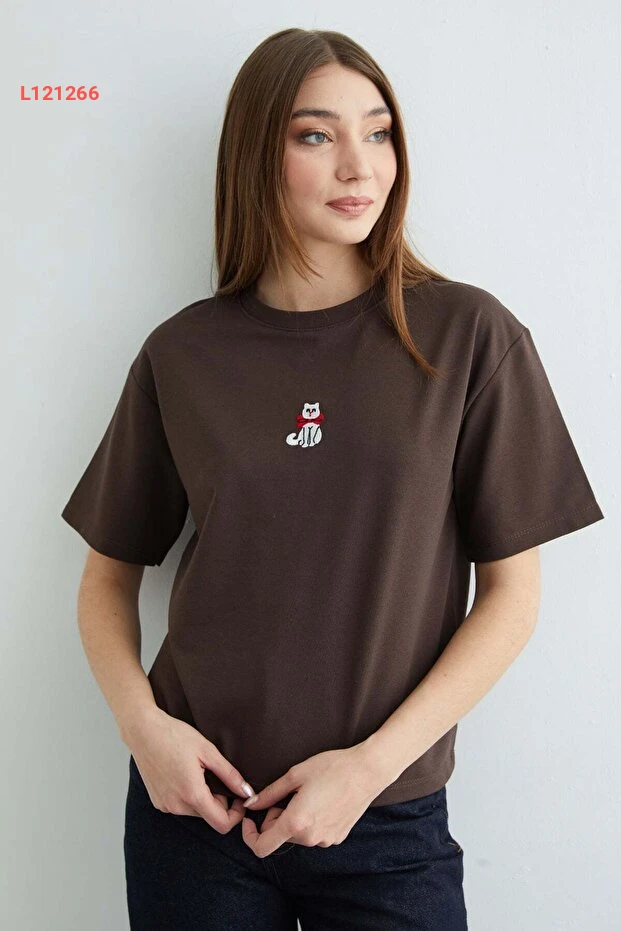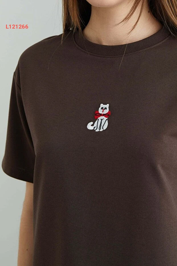 تيشرت فضفاض بياقة دائرية بتطريز قطط من فولا مودا
