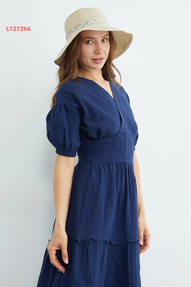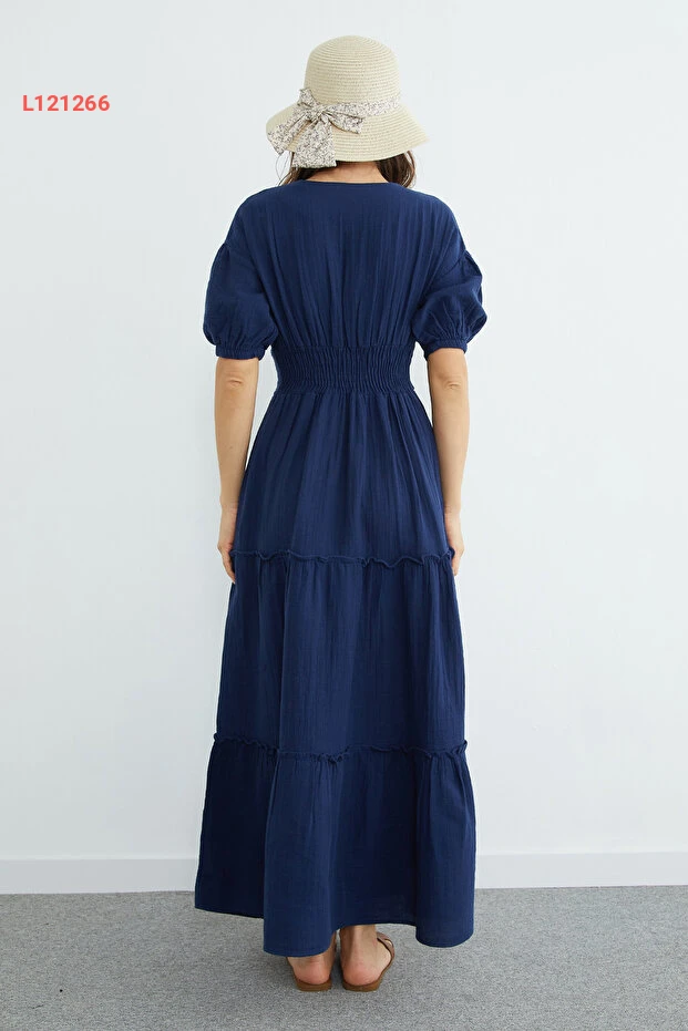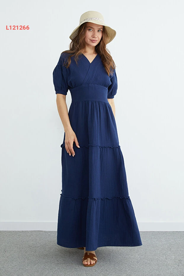 فستان ماكسي من موسلين برباط بألوان فولي مودا