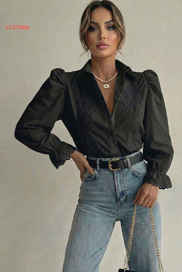 اجذبي الأنظار بإطلالة أنيقة مع قميص فوميل النسائي الأسود المزود بتفاصيل فيستو الفريدة. يجمع بين الطابع الكلاسيكي واللمسات العصرية، مما يجعله الخيار المثالي لجميع المناسبات. استمتعي بالراحة والأناقة في آن واحد مع هذا التصميم الفريد من نوعه!