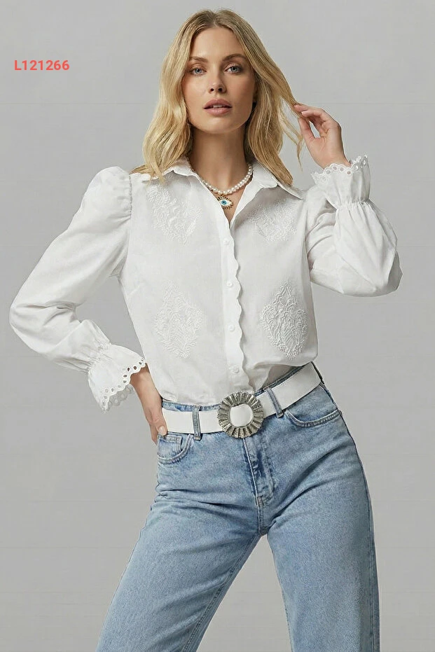 استمتعي بأناقة timeless مع قميص Fumel النسائي ذو التفاصيل الفستو الأبيض، الذي يجمع بين الرقي والراحة. تصميمه المستوحى من الطراز العتيق يأتي بلمسات عصرية تضفي لمسة من الجمال على إطلالتك، ما يجعله الخيار المثالي للعبايات اليومية أو المناسبات الخاصة. ارتدي هذا القميص لتظهري بأناقة فريدة وتعبري عن ذوقك الرفيع.
