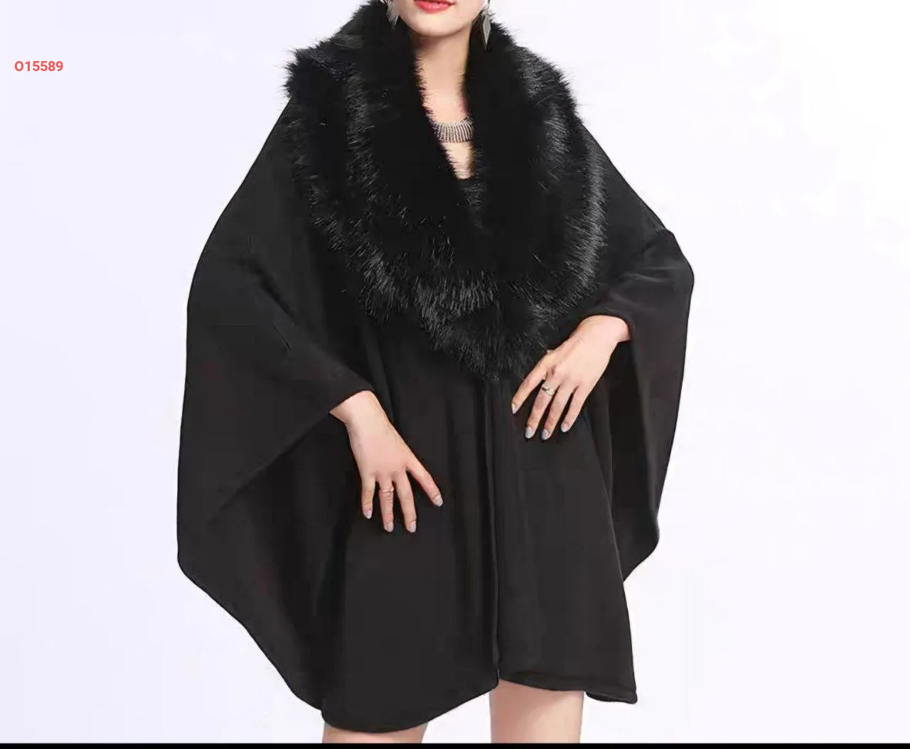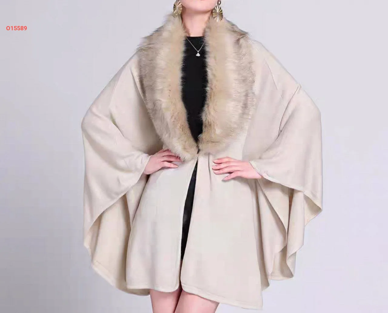 معطف فرو بياقة واسعة