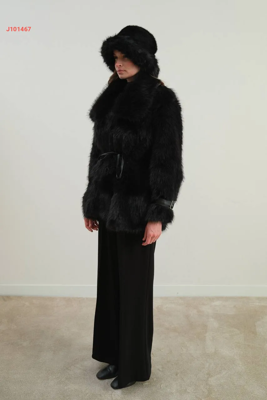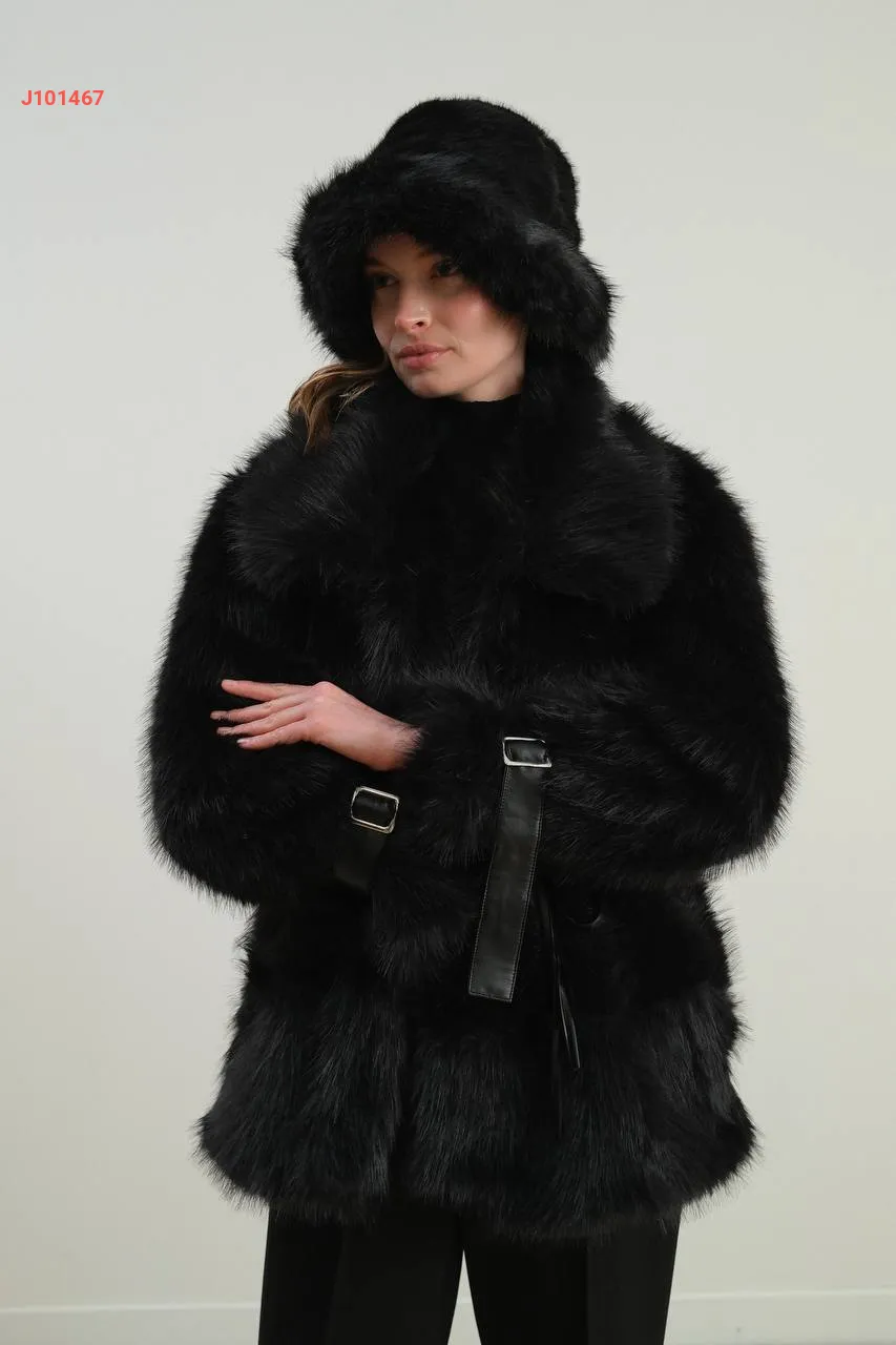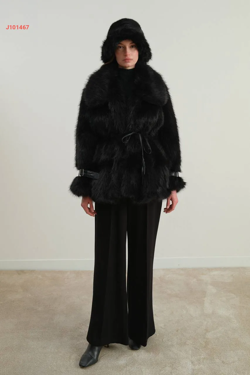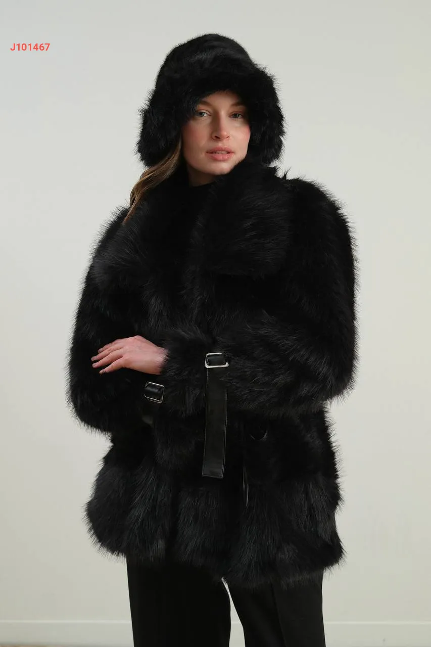 Sandyna Kol Kemerli Premium Kürk 76 cm uzunluğundaki formu, hem jeanlerle günlük şıklıkta hem de elbiselerle özel günlerde etkileyici bir görünüm sağlar. Soğuk havalarda sıcak ve sofistike bir duruş için ideal bir tercihtir.