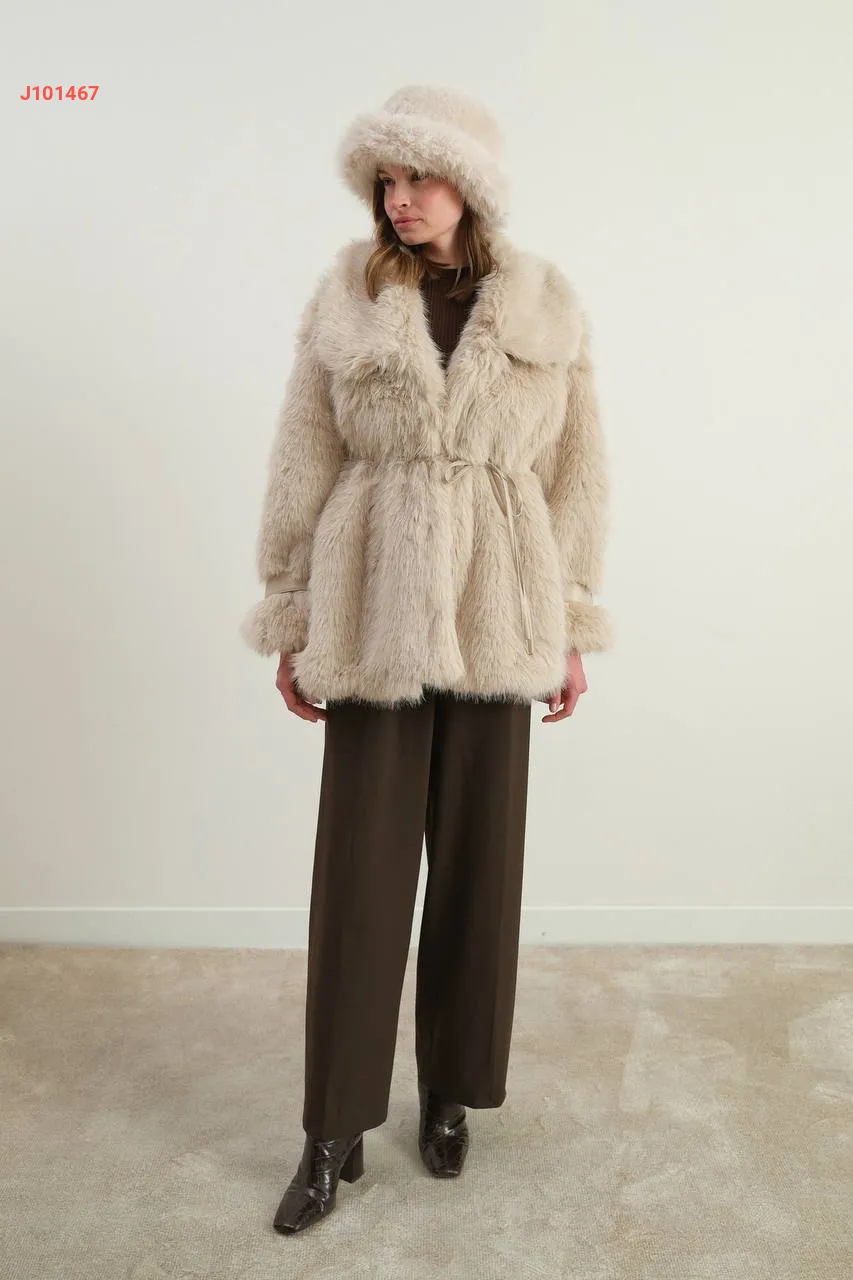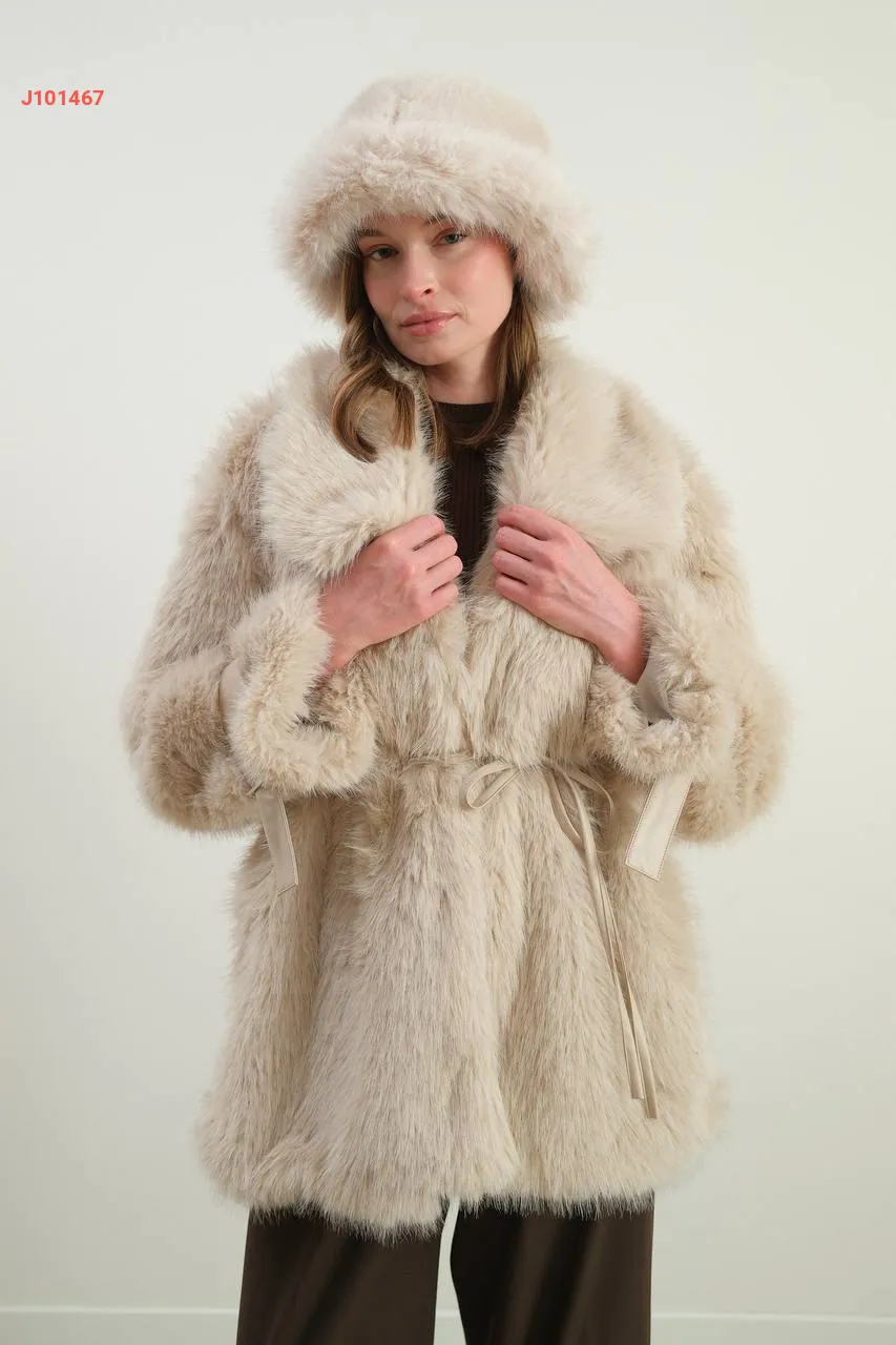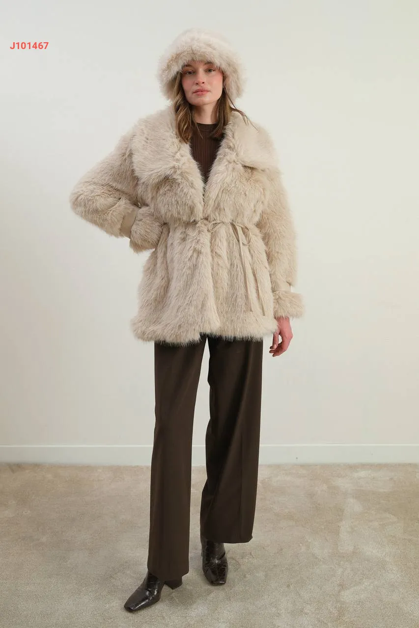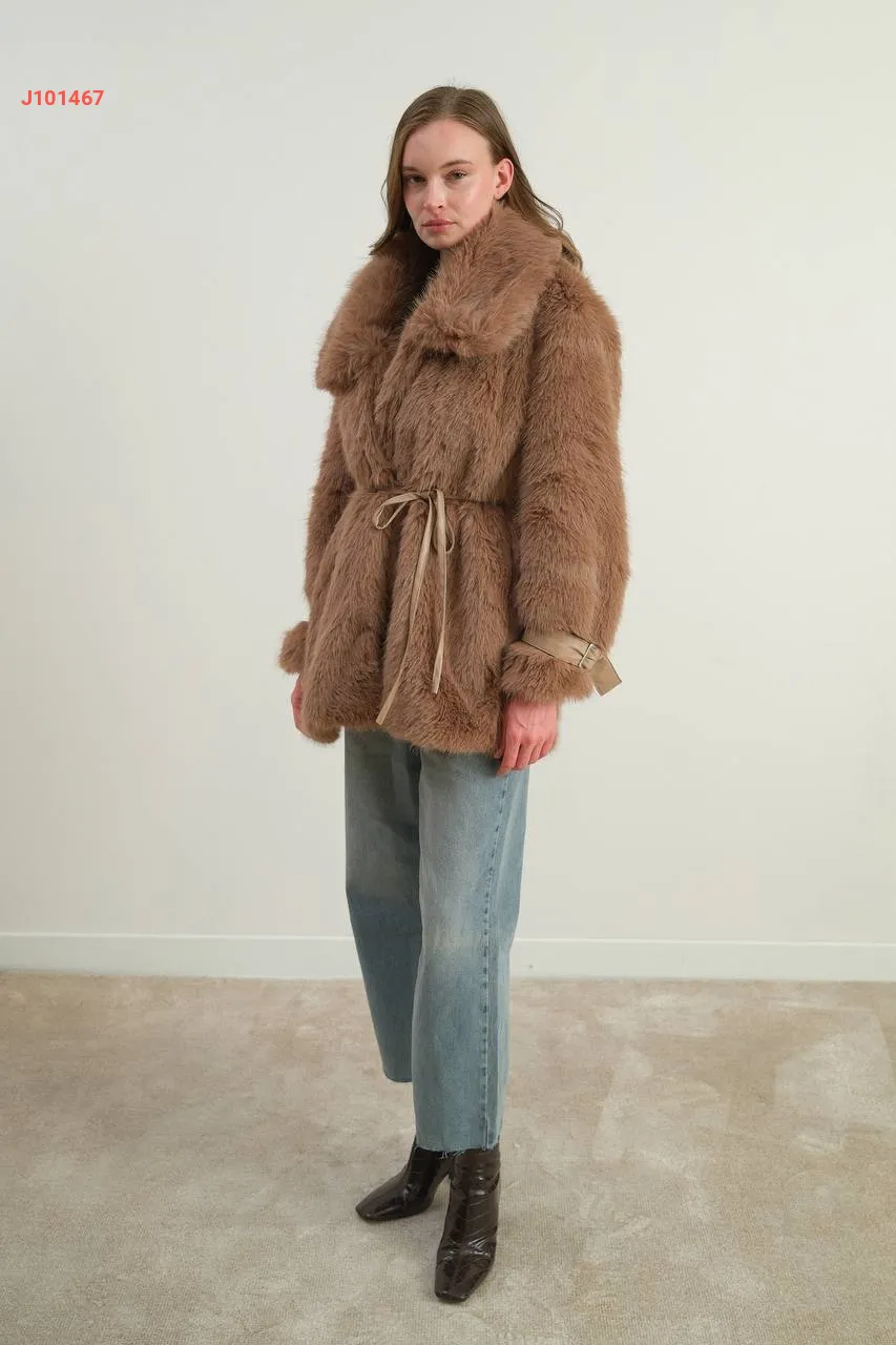 Sandyna Kol Kemerli Premium Kürk 76 cm uzunluğundaki formu, hem jeanlerle günlük şıklıkta hem de elbiselerle özel günlerde etkileyici bir görünüm sağlar. Soğuk havalarda sıcak ve sofistike bir duruş için ideal bir tercihtir.