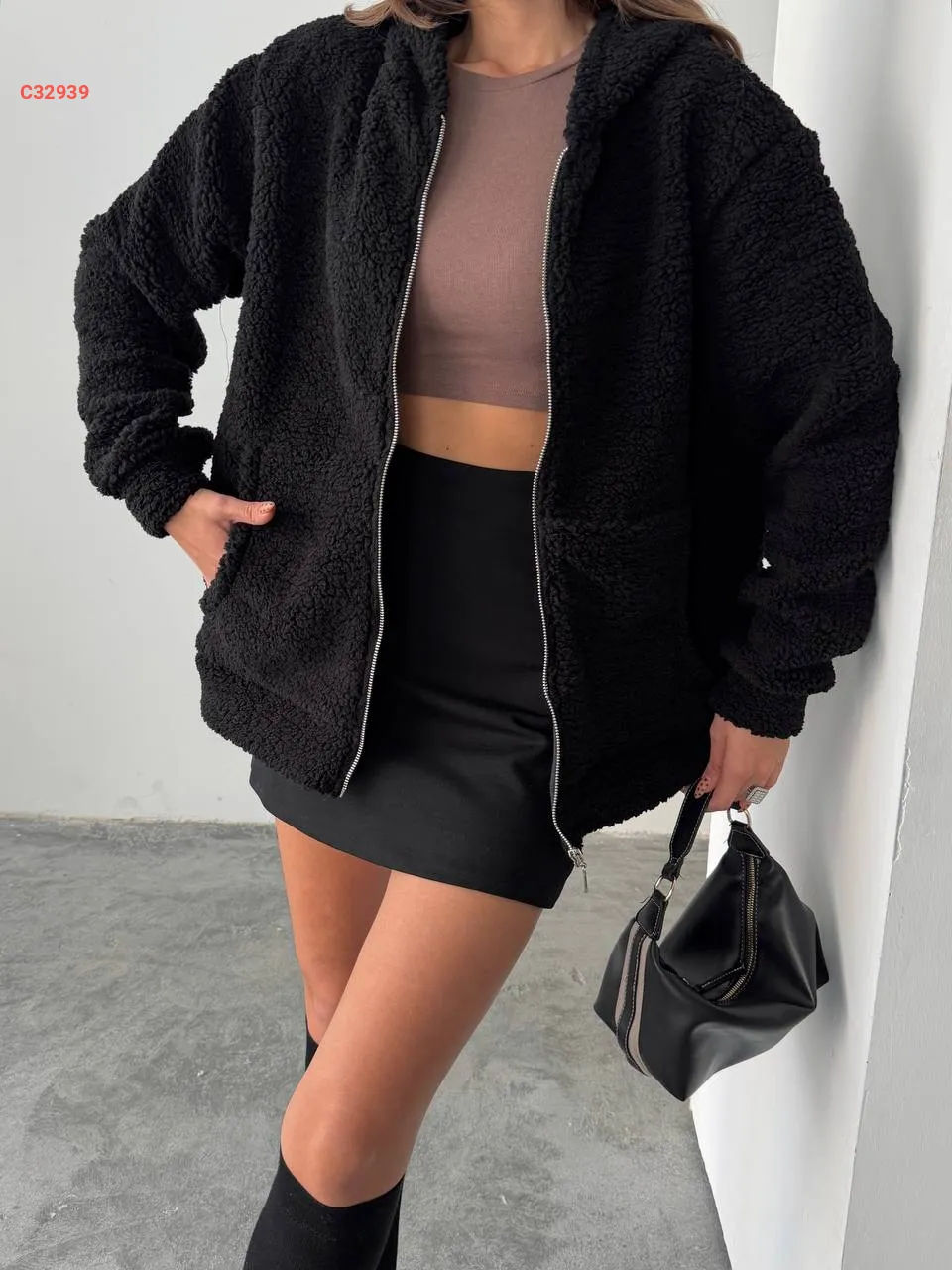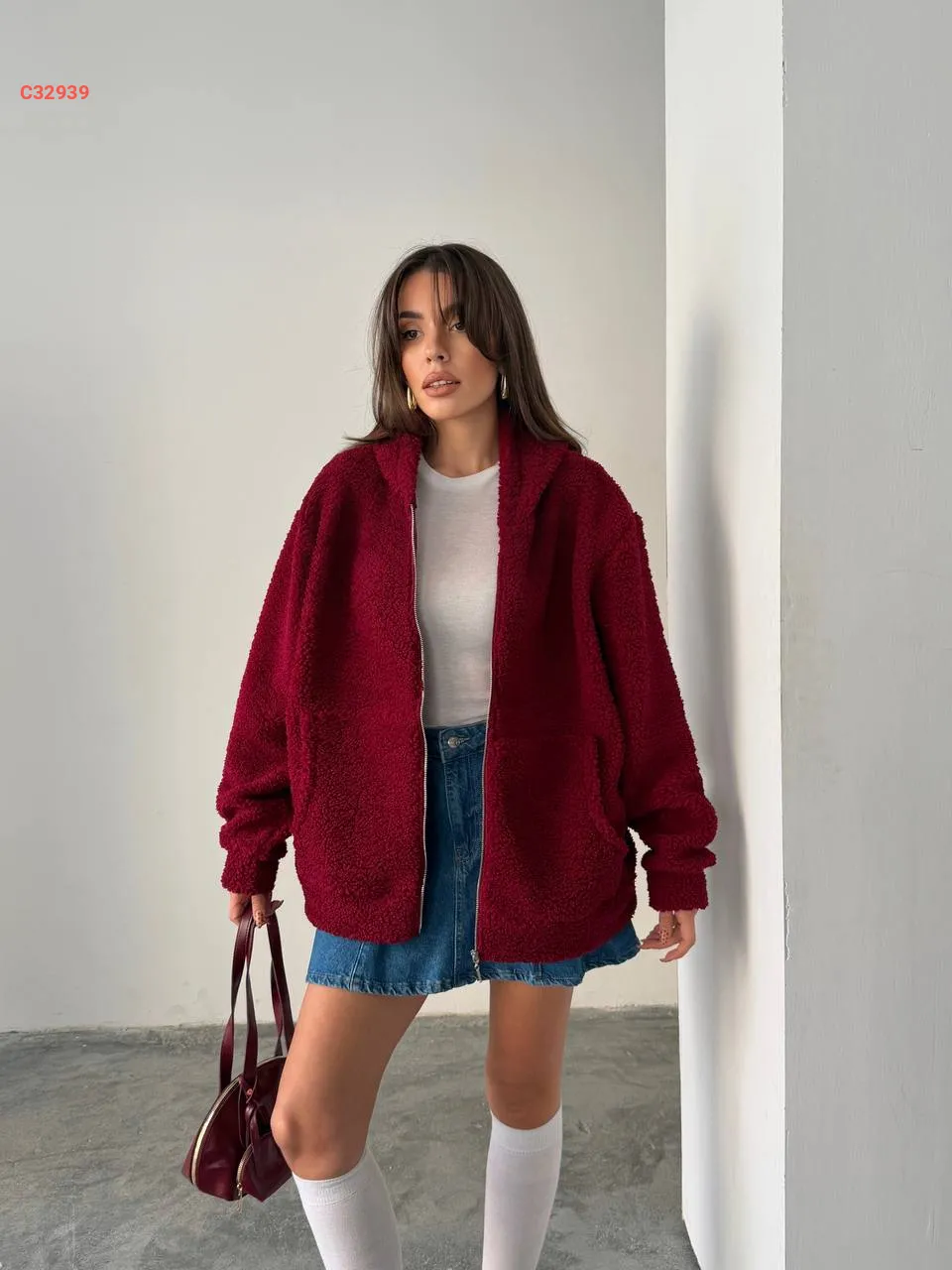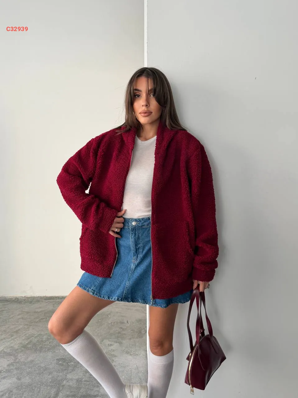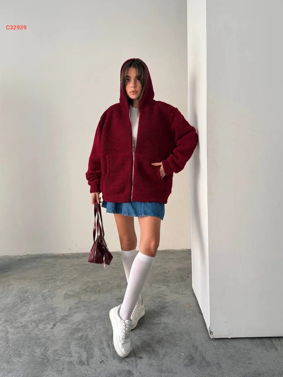 Kıvırcık kumaş Fermuarlı oversize kalıpSeri 6 lı SS MM LL