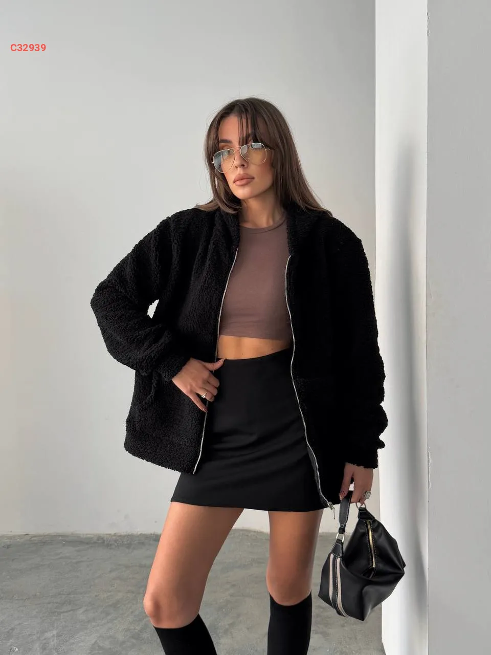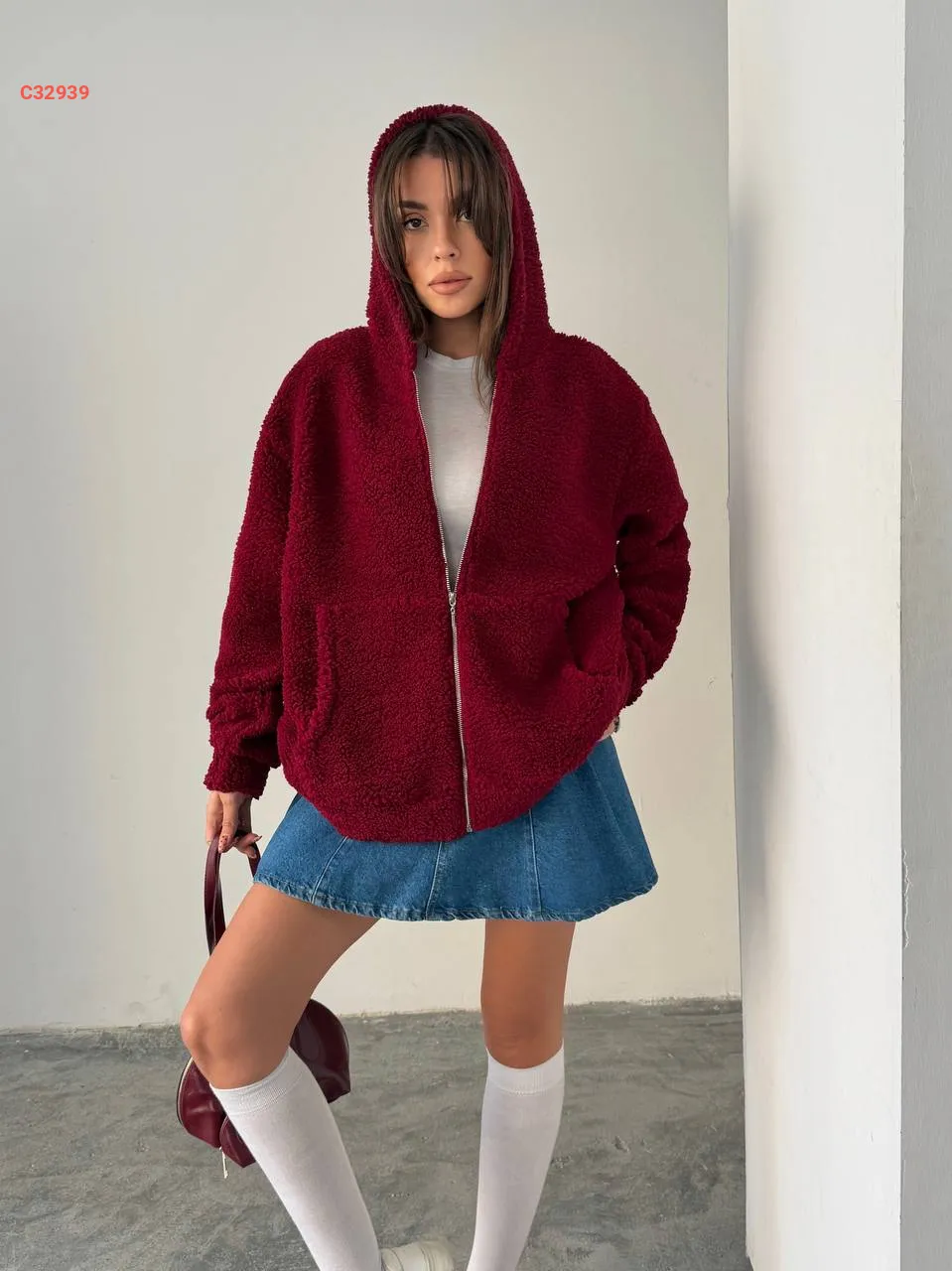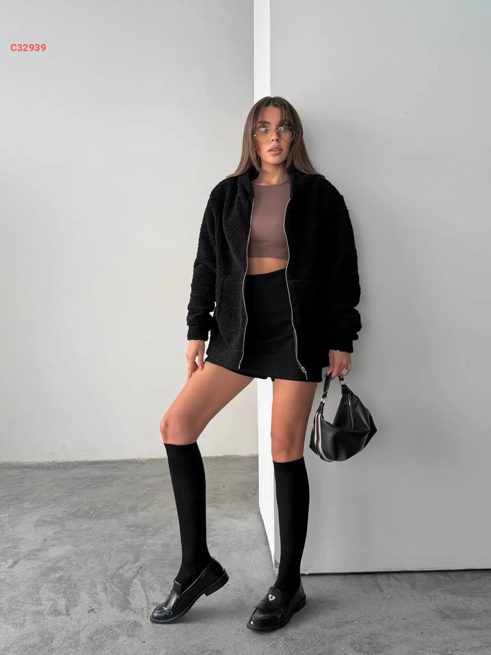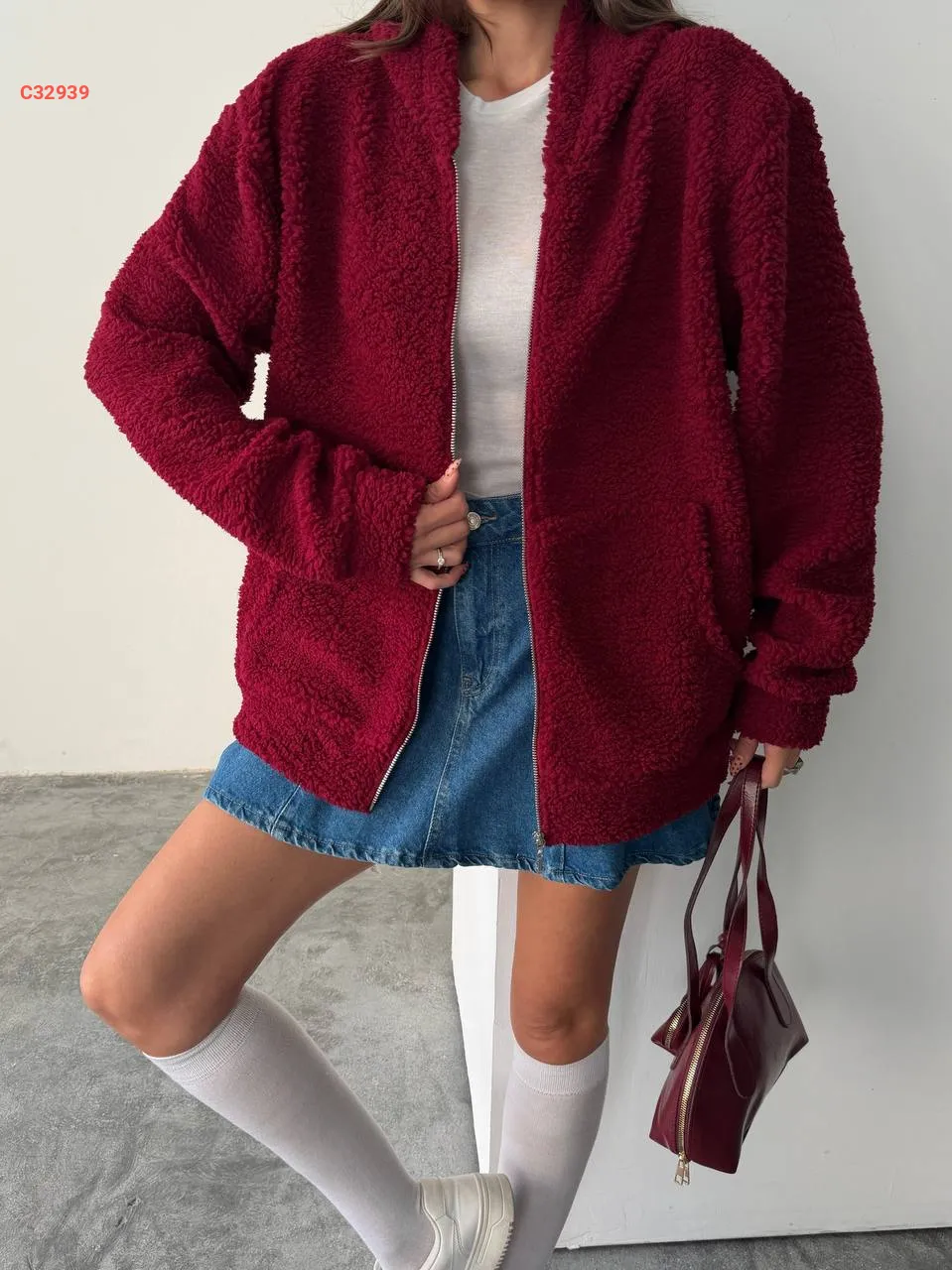 Kıvırcık kumaş Fermuarlı oversize kalıpSeri 6 lı SS MM LL