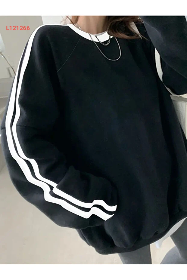 سويت شورت نسائي بكمّ واسع مع تفاصيل شريطية باللون الأسود من FUWEAR