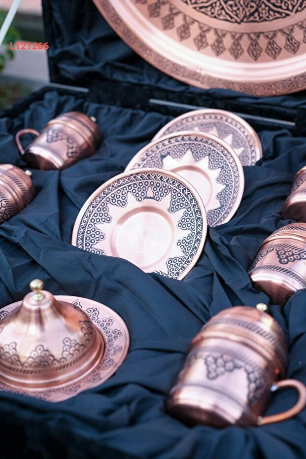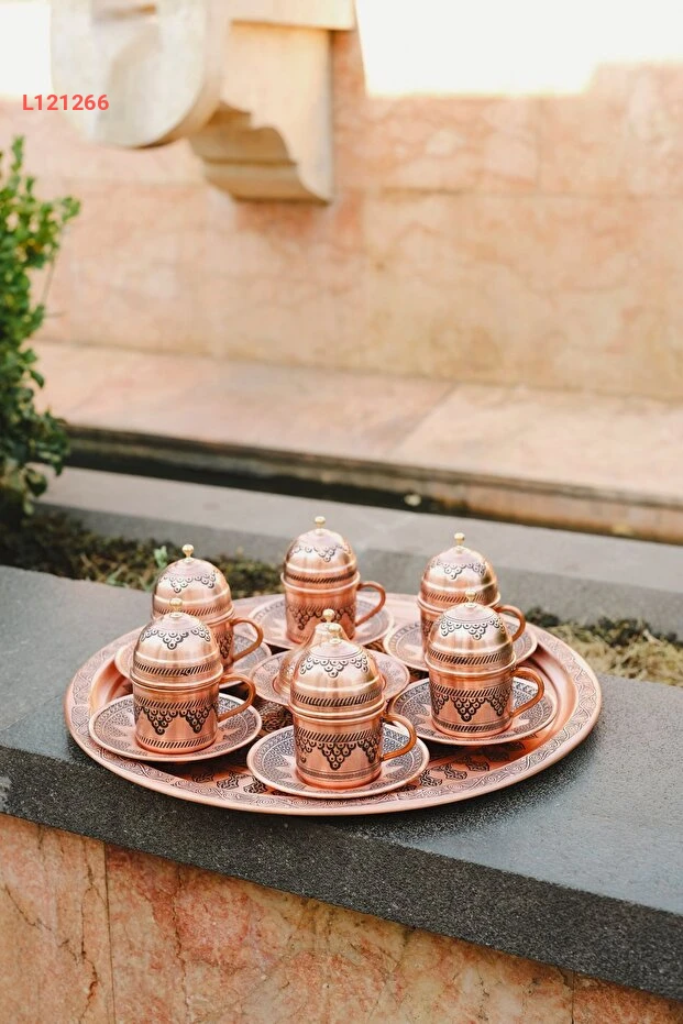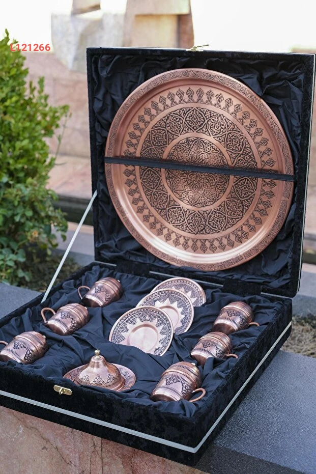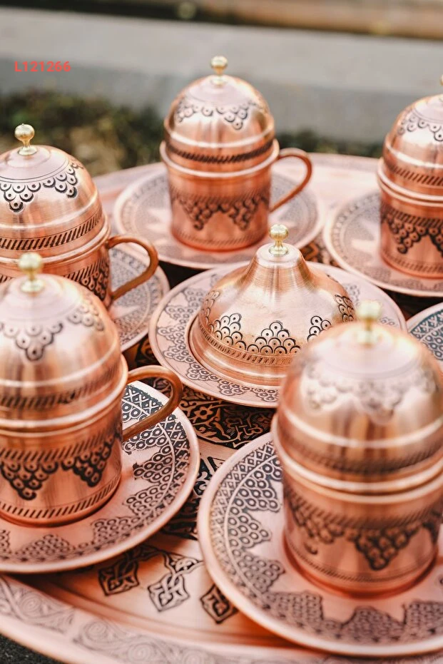 طقم فناجيل قهوة تركية مطعمة بالنحاس من جازيرتا 6 أشخاص مع علبة فاخرة