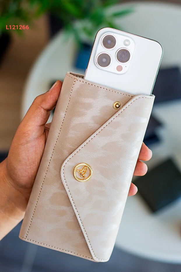 محفظة نسائية بتصميم نمط الفهد مع جيب للعملات المعدنية وفتحتي بطاقة