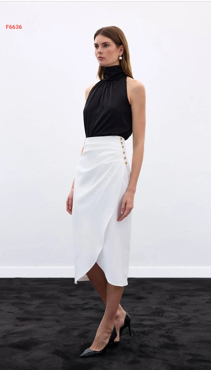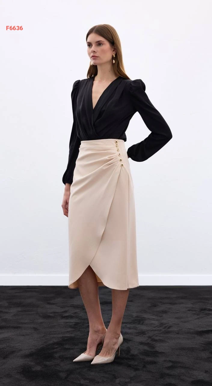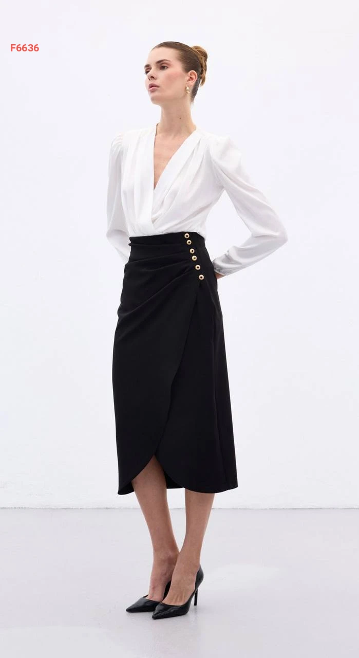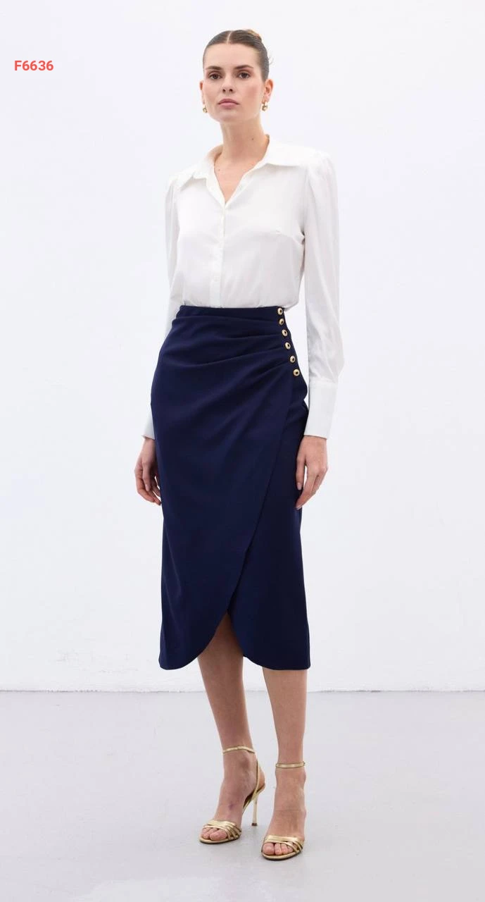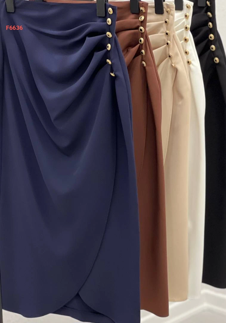 تنورة مجمعة بأزرار جانبية