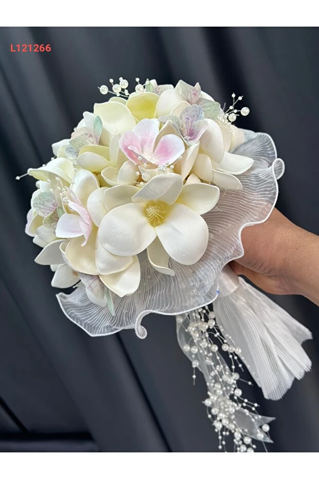 استمتع بجمال الطبيعة مع باقة "Gelinçiçekcom" المصنوعة من تول مفصل وخرز لؤلؤي، حيث تجمع بين الأناقة والرومانسيّة في تصميم فاخر. تضفي أزهار الماغنوليا الفريدة لمسة فريدة على أي مناسبة، مما يجعلها الخيار المثالي للاحتفالات والأعراس، لتكون ذكرى لا تُنسى ترسم الابتسامة على وجه كل من يراها.