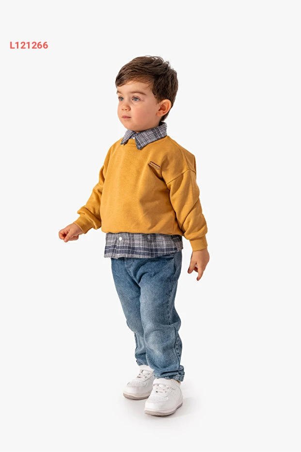 طقم 3 في 1 لجينز وقميص وسويت شيرت للأولاد