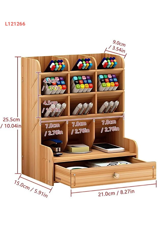احصل على تنظيم مثالي لمكتبك مع منظم الأقلام Genel Markalar المصنوع من خشب الجوز الفاخر. يتميز بتصميمه العصري مع 9 أقسام وخزانة سحب، ما يتيح لك ترتيب أدواتك المكتبية بسهولة والوصول إليها بسرعة. اجعل مساحة عملك أكثر أناقة وكفاءة مع هذا الحامل الرائع!