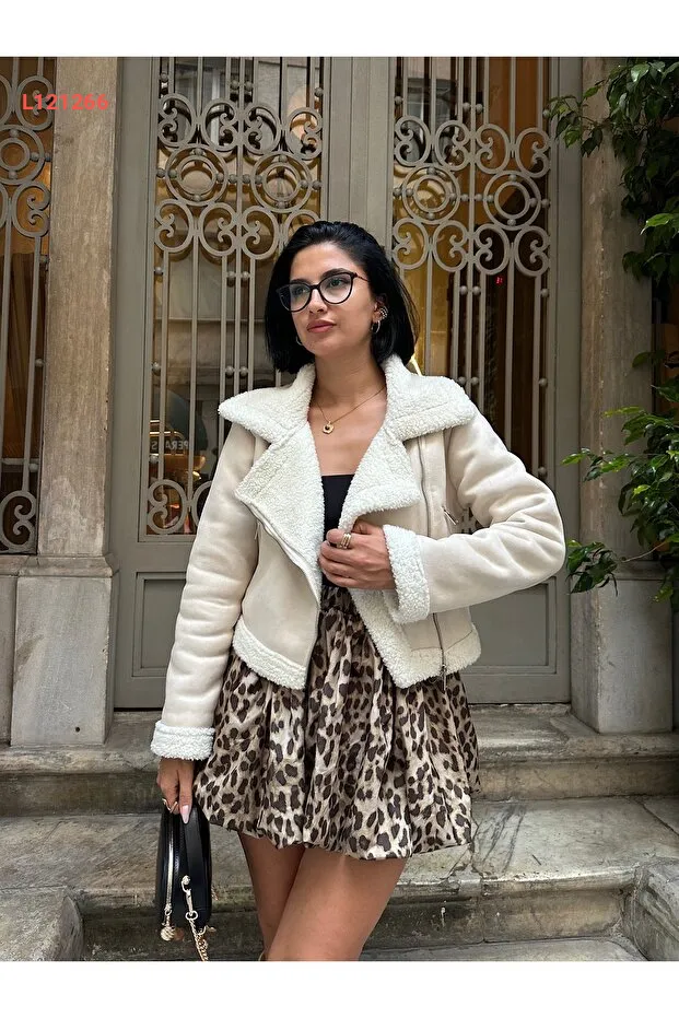 اجعل إطلالتك متميزة مع جاكيت "Genel Markalar" الخارج بياقة من الفرو، الذي يتميز بتصميمه العصري من الجلد السويدي بلون البيج الأنيق. يمنحك هذا الجاكيت الراحة والدفء، مما يجعله الخيار المثالي لإضافة لمسة من الأناقة الجريئة إلى ملابسك اليومية. ارتديه مع jeans أو تنورة للحصول على مظهر مثالي يجمع بين الأناقة والراحة.