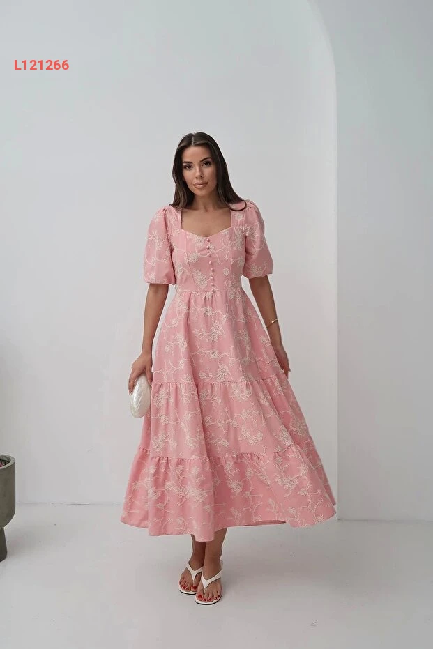 فستان كتان مزين بأزرار ودلفتين باللون الوردي من جنيل ماركalar