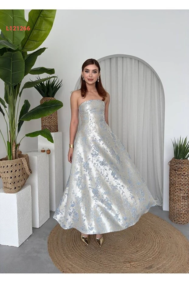 فستان الأميرة النسائي بدون أكتاف بتصميم ساتان جاكار
