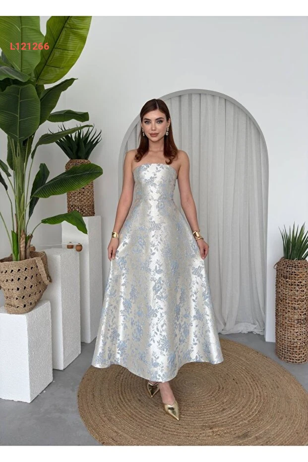 تألقي بأناقة مع فستان Genel Markalar المصنوع من الساتان الجاكار، والذي يتميز بتصميمه الكلوشي strapless الذي يبرز أنوثتك. يجمع بين الفخامة والراحة، ليمنحك إطلالة ساحرة تناسب المناسبات الخاصة والسهرات. اجعلي كل لحظة مميزة مع تفاصيله الراقية التي تعكس ذوقك الرفيع.