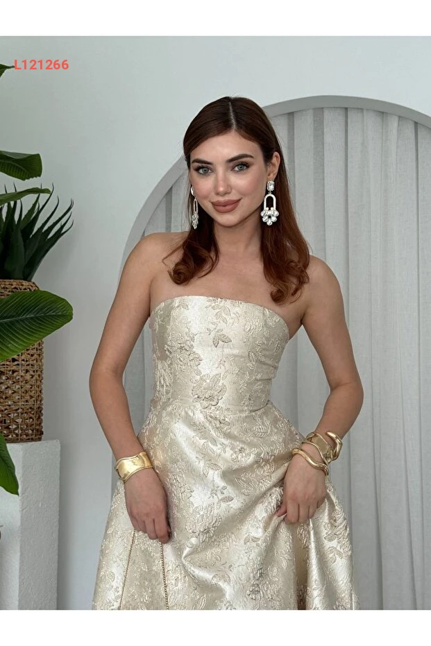 فستان تPrincess Strapless مزين بالأقمشة الساتان الجاكار من جنيل ماركalar