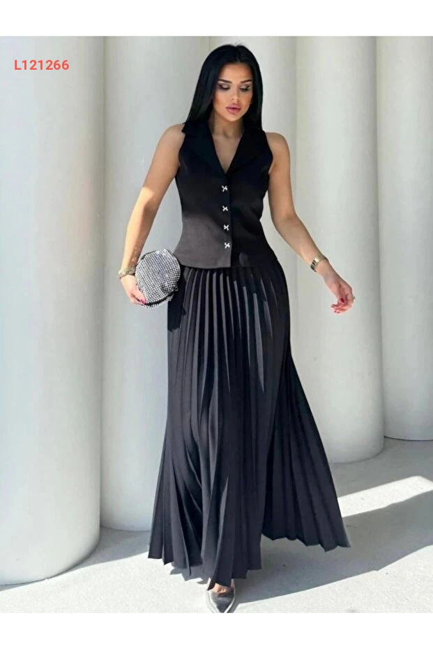 أضف لمسة من الأناقة إلى خزانة ملابسك مع مجموعة Genel Markalar إـيتك يليك! تتميز بتصميم عصري يشمل تنورة وجيلي، مما يوفر لك مظهراً متكاملاً يناسب المناسبات الرسمية وغير الرسمية. مصنوعة من خامات عالية الجودة، تجمع بين الراحة والأناقة لتضمن لك إطلالة رائعة في كل مرة.