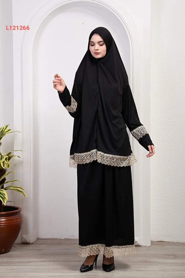 فستان صلاة نسائي مكون من قطعتين مع تنورة دانتيل بلون موحد