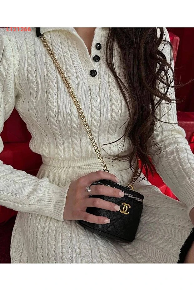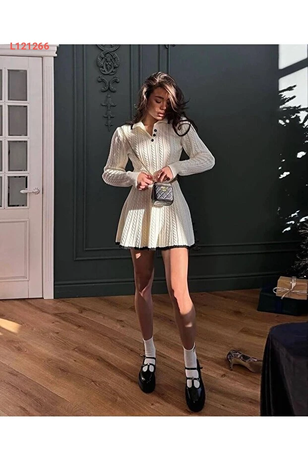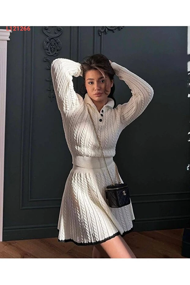 طقم تريكو أنيق بولو ياقة - كنزة وتنورة مع تمتد فائق للراحة