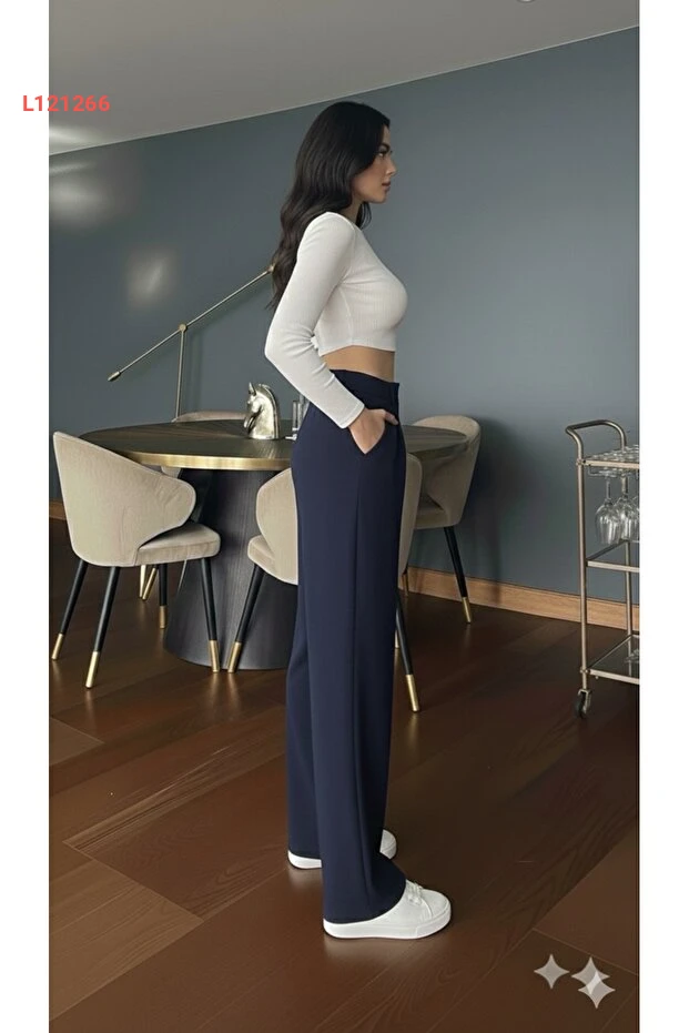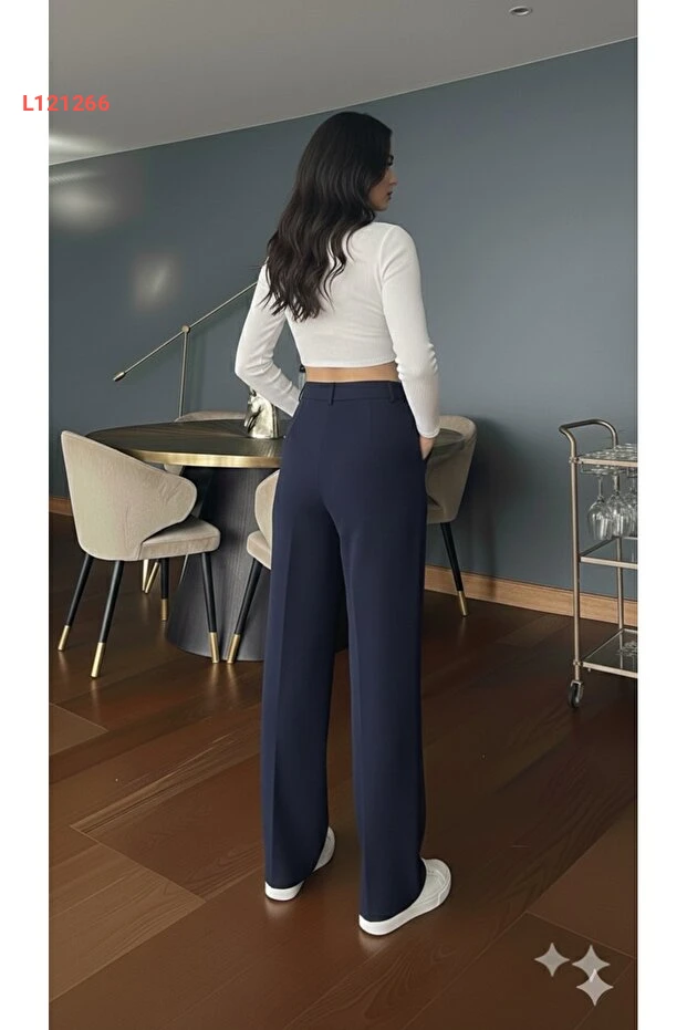 استمتعي بإطلالة أنيقة وعصرية مع سروال بالازو العالي الخصر من Genel Markalar. يتميز بقصته الواسعة وخصره العالي الذي يبرز جمال قوامك، بينما تضيف الدرجات الجذابة من اللون الكحلي والتفاصيل المميزة بالأزرار لمسة من الأناقة. مصنوع من قماش مرن يمنحك الراحة والحرية في الحركة، مما يجعله الخيار المثالي لكل مناسبة.