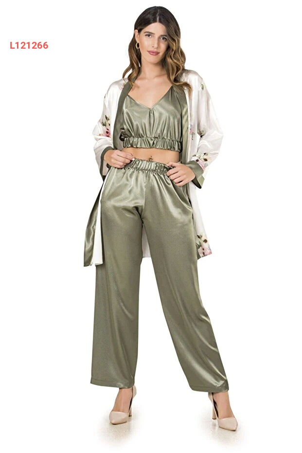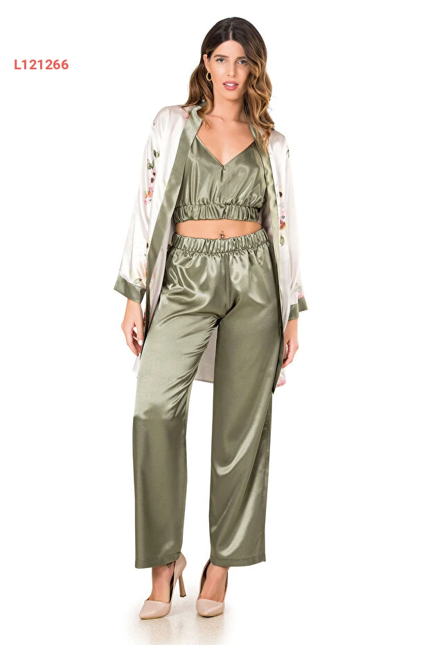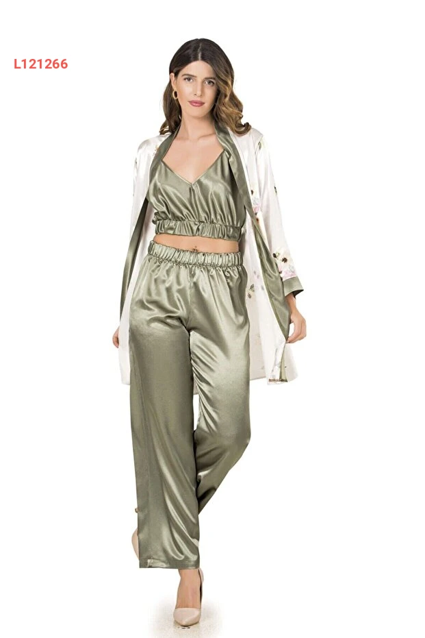 استمتعي بلمسة من الأناقة والراحة مع طقم البيجامة النسائي المصنوع من الساتان الفاخر من genel markalar. يتضمن هذا الطقم ثلاث قطع أنيقة، حيث يوفر لكِ الحرية في الحركة ويضفي لمسة من الرقي على إطلالتك في المنزل. اجعلي لياليكِ مميزة مع هذا التصميم الأنيق الذي يجمع بين الراحة والجمال!