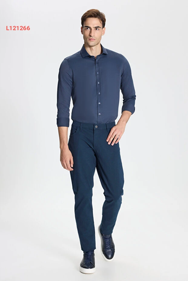 بنتلون تشينو أزرق داكن بقصة رفيعة مع 5 جيوب من جورج هنري