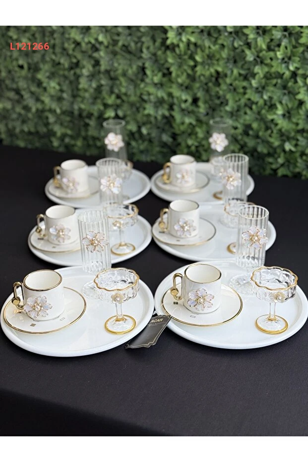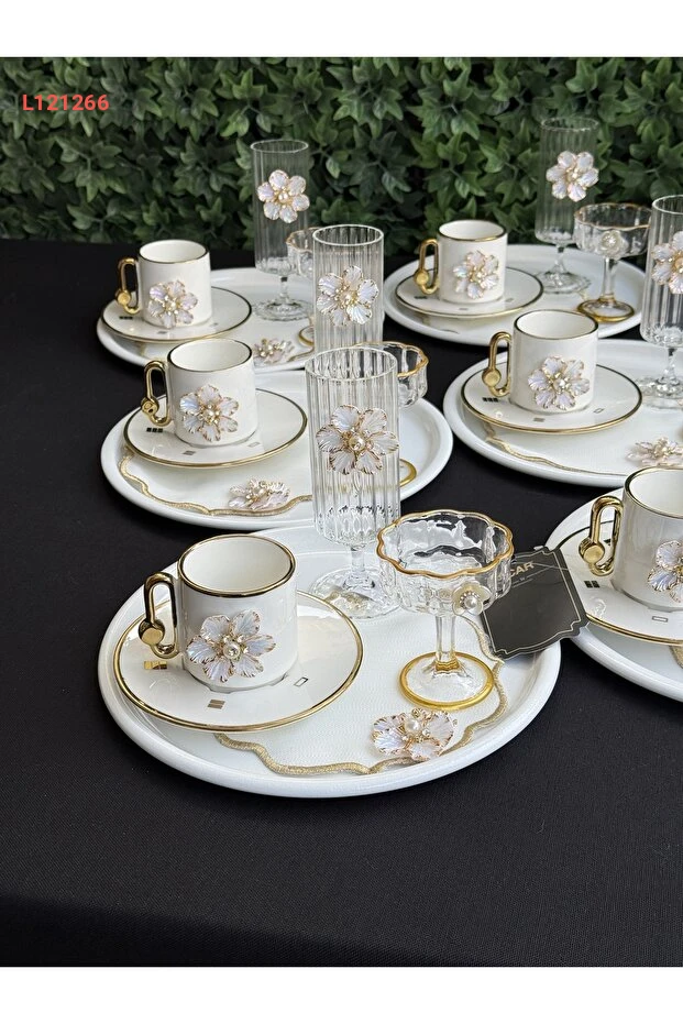استمتع بأجواء فاخرة مع مجموعة HediyeKöşkü المكونة من 36 قطعة من البورسلين المزخرف بالزهور، المصممة خصيصًا لتقديم القهوة لستة أشخاص. تضيف هذه المجموعة لمسة أنيقة إلى أي مناسبة، مما يجعل كل لحظة من لحظات القهوة تجربة لا تُنسى بفضل جودتها العالية وتصميمها الرائع.