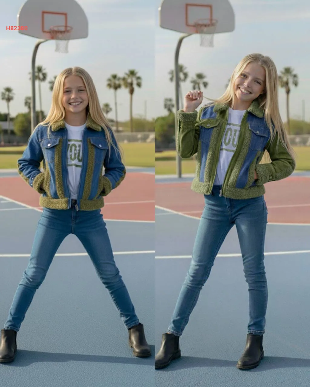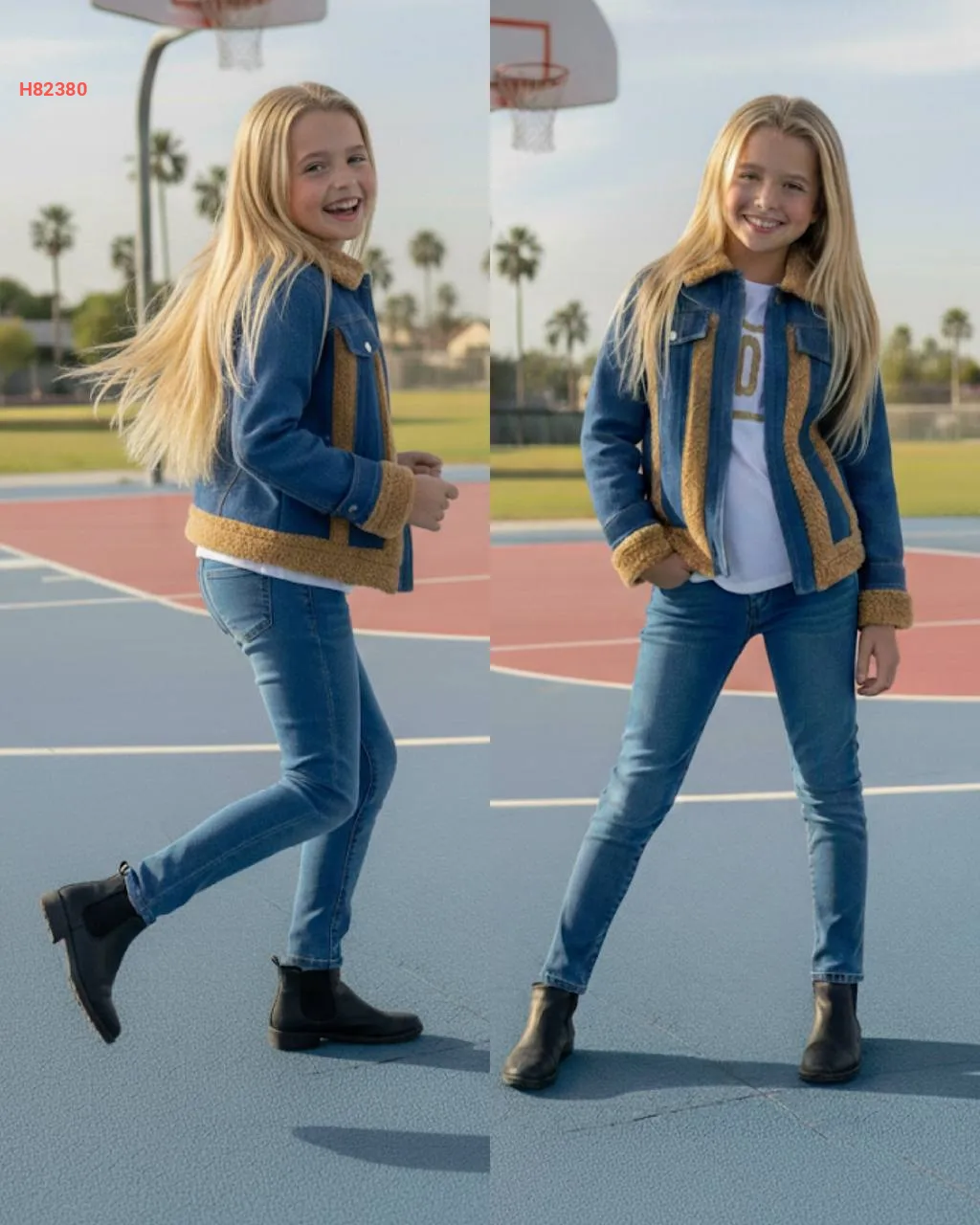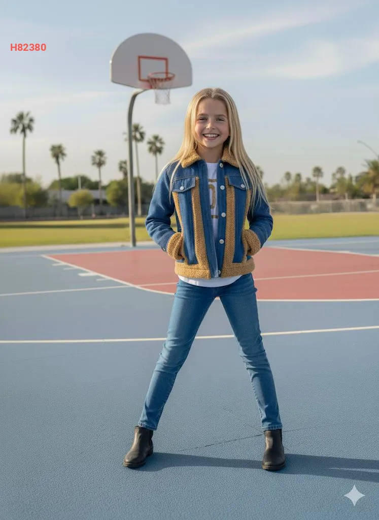 طقم بنطال جينز بناتي 3 قطع