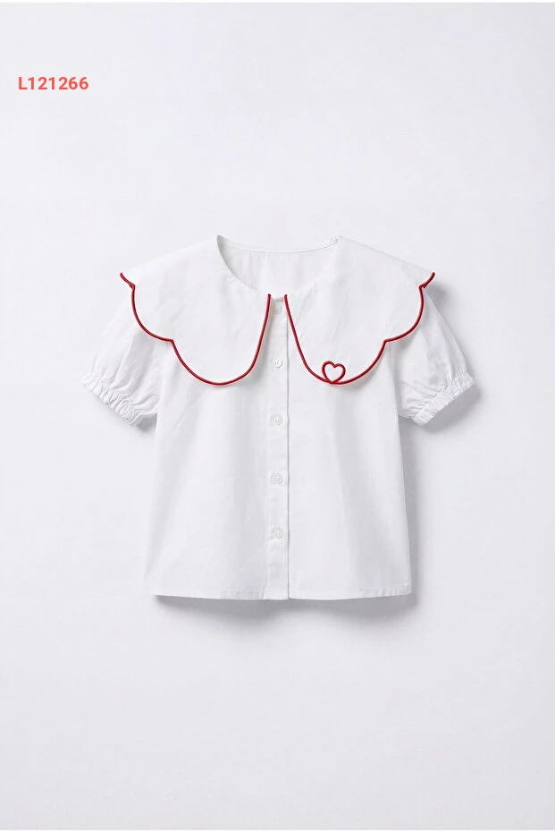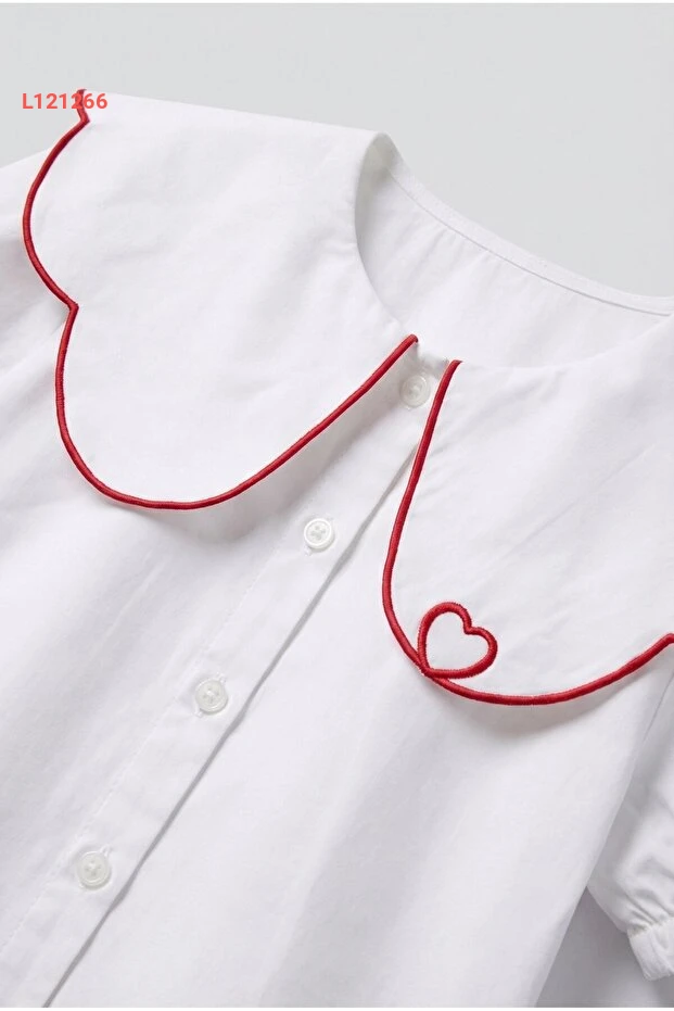 طقم بلوزة بيضاء مزينة بطبعة قلوب وتنورة تول حمراء للبنات