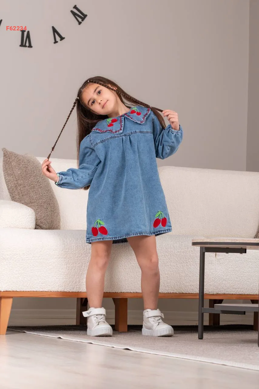 فستان جينز بناتي زارا مطرز كرز