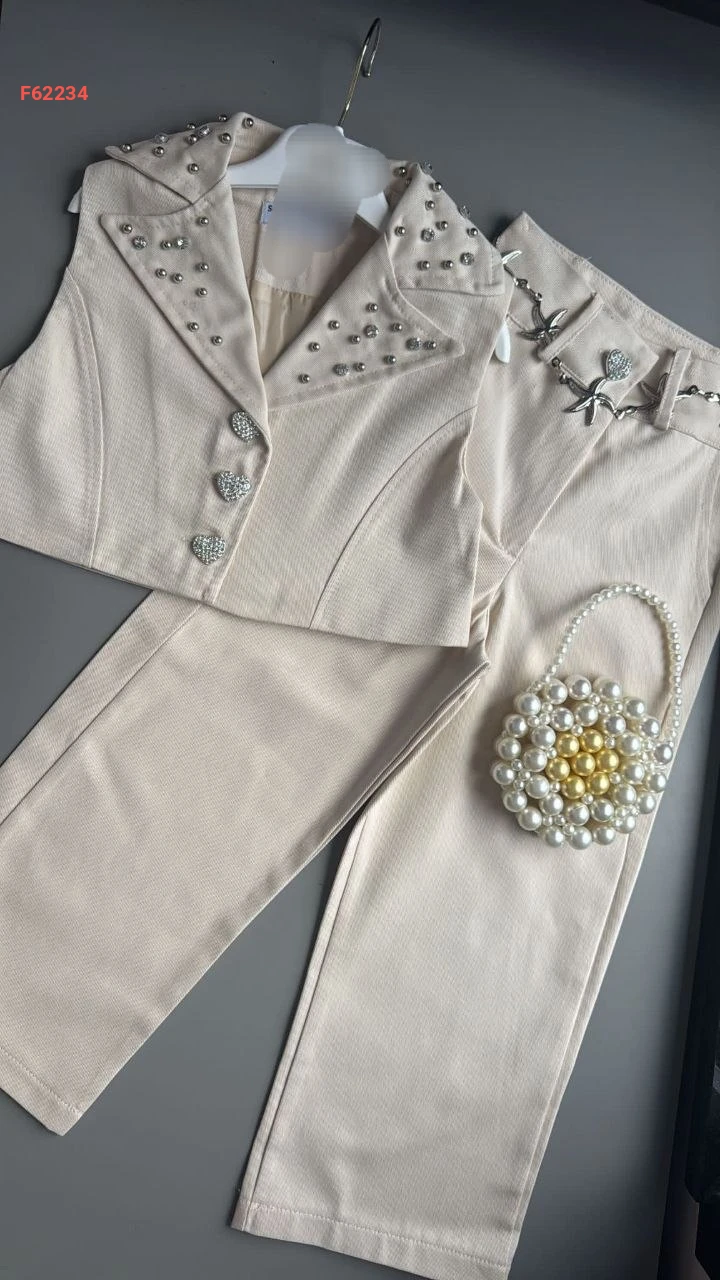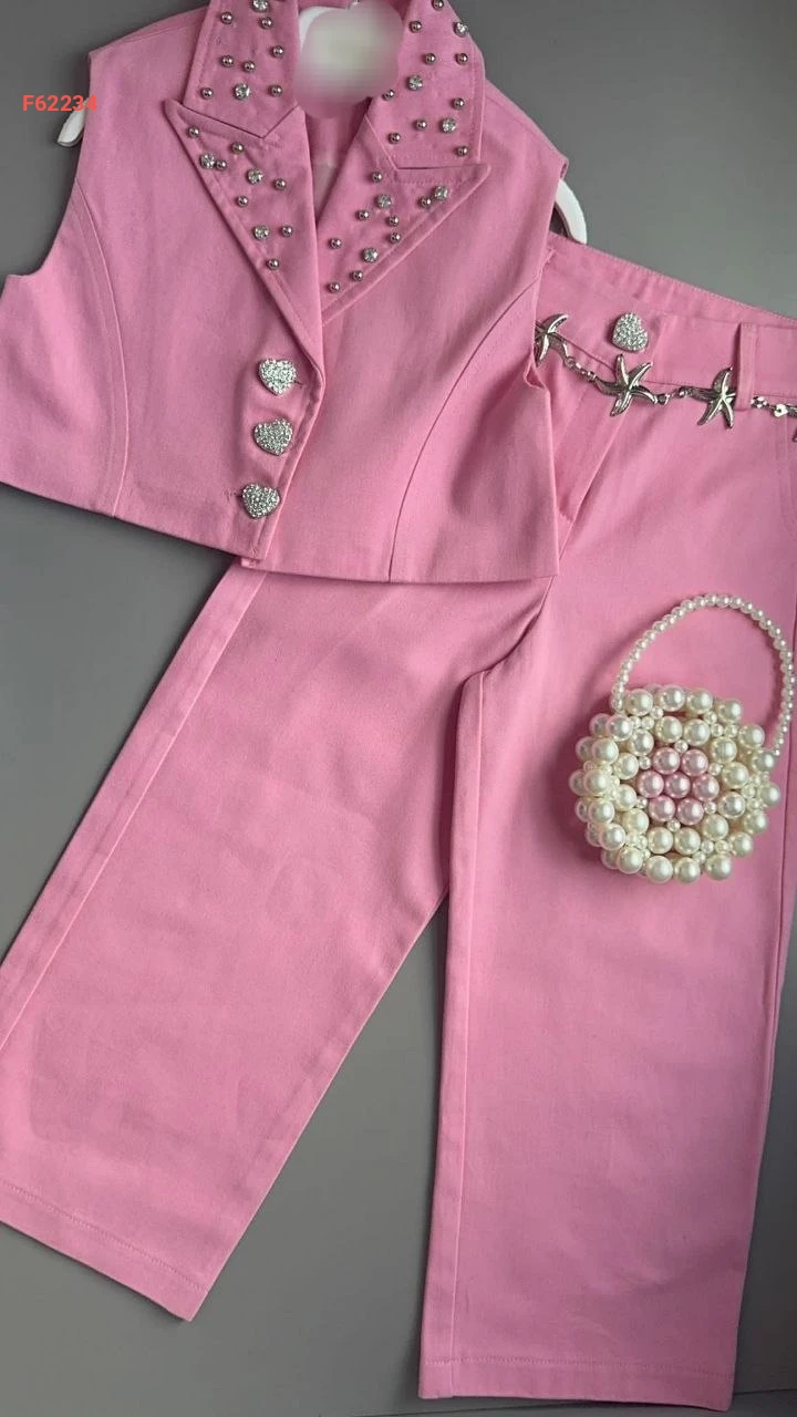 طقم بناتي جينز بنطال ويلك مع لولو وأحجار