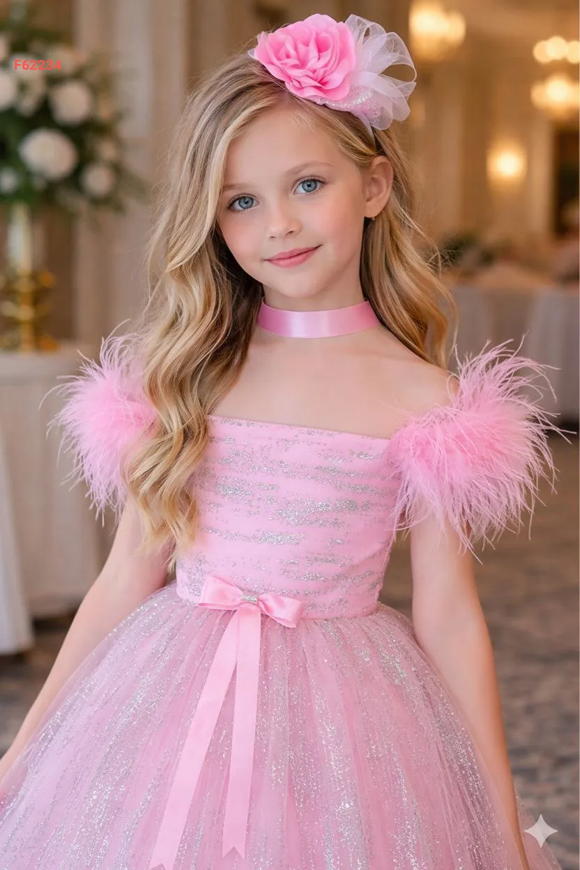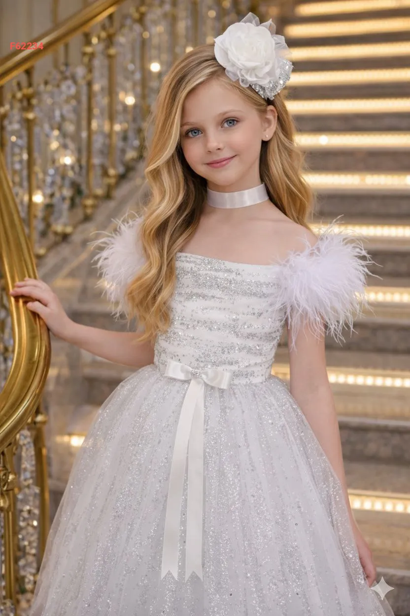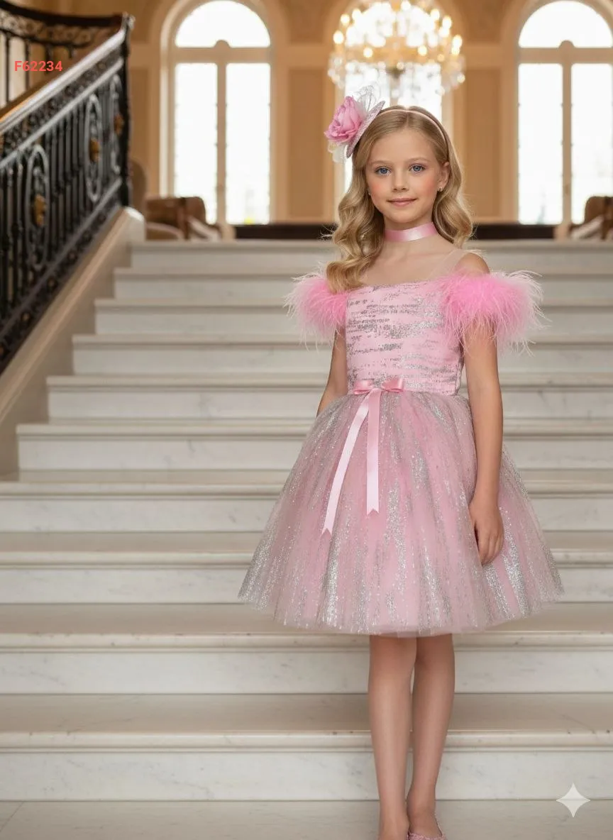 فستان بناتي مطرز بريش وفيونكة عالظهر