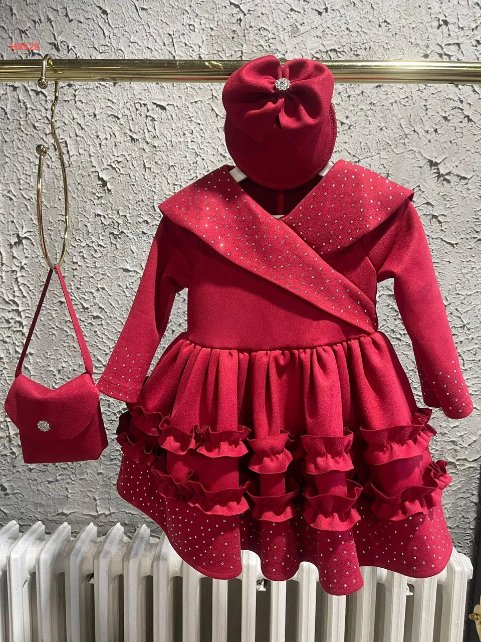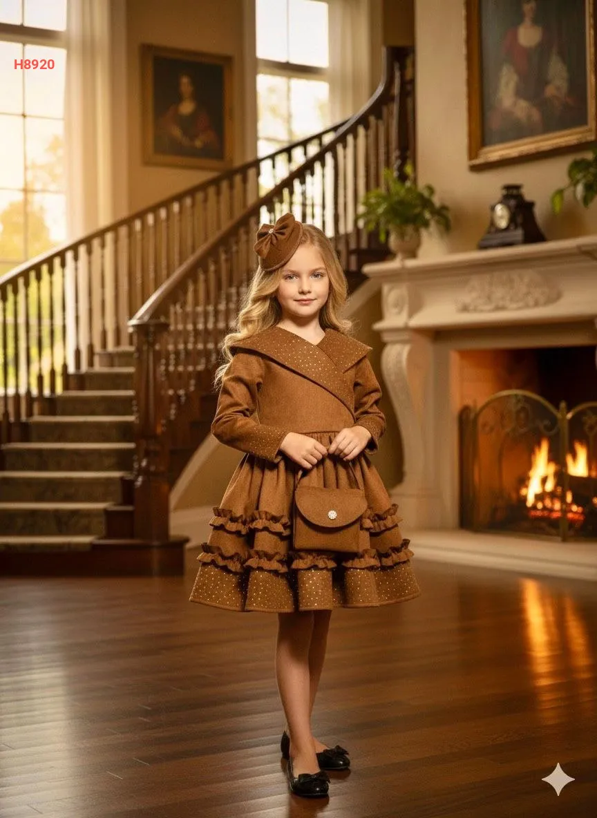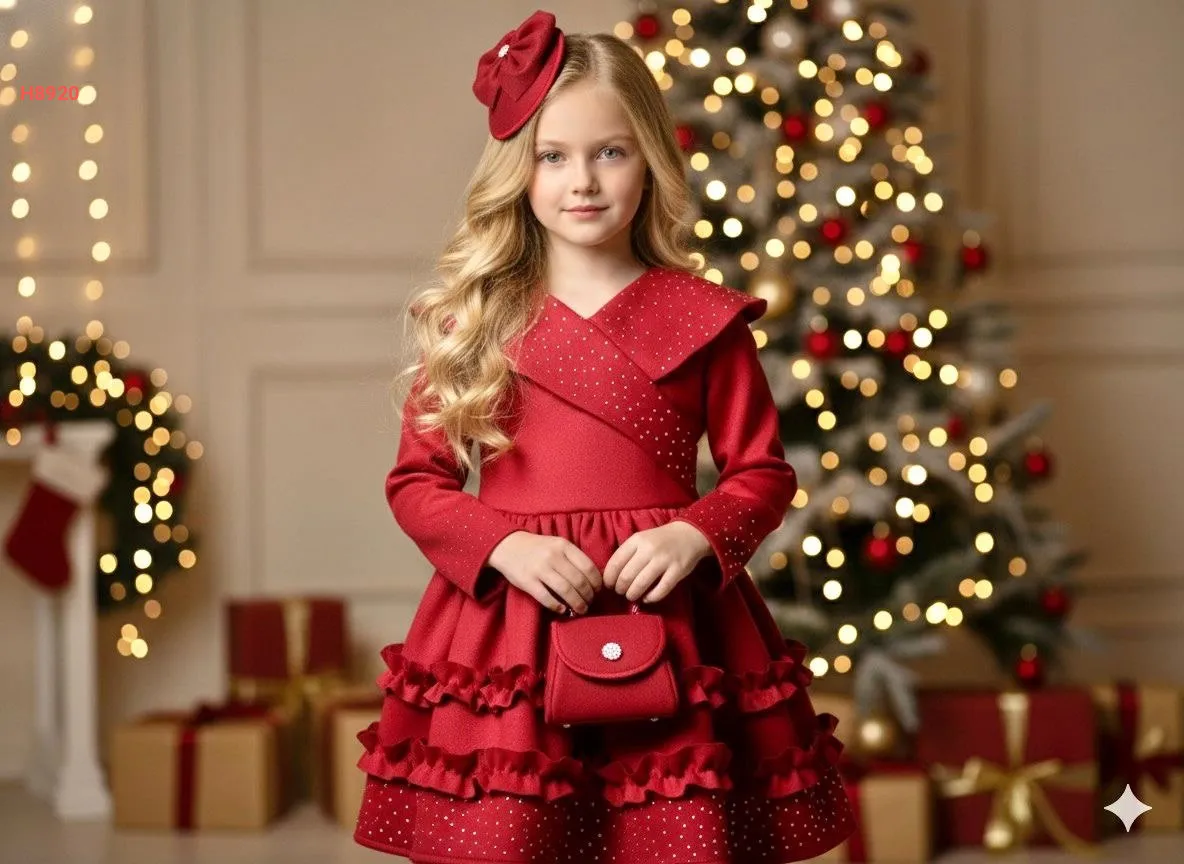 فستان بناتي شامواه كشكش بتفاصيل حجرية