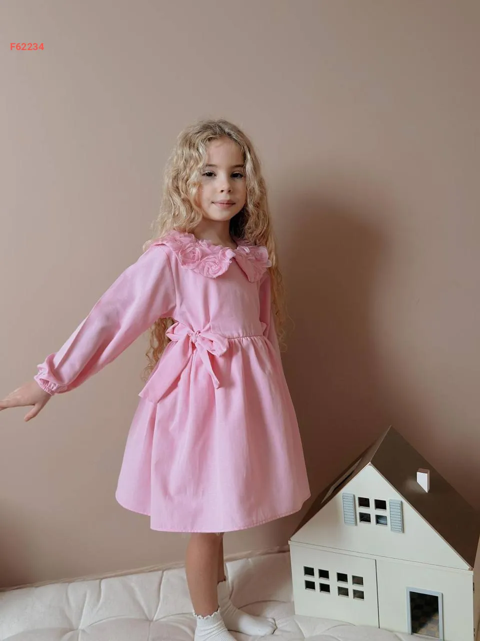 فستان بناتي بياقة ورد وفيونكة