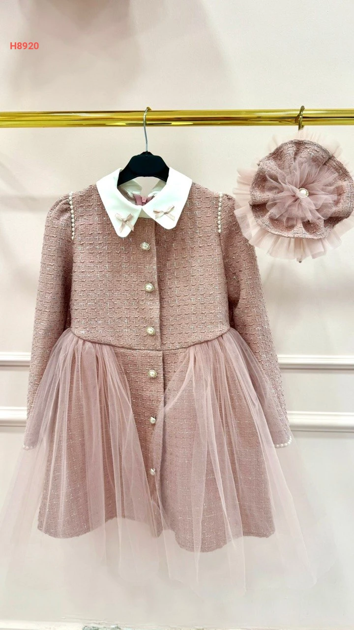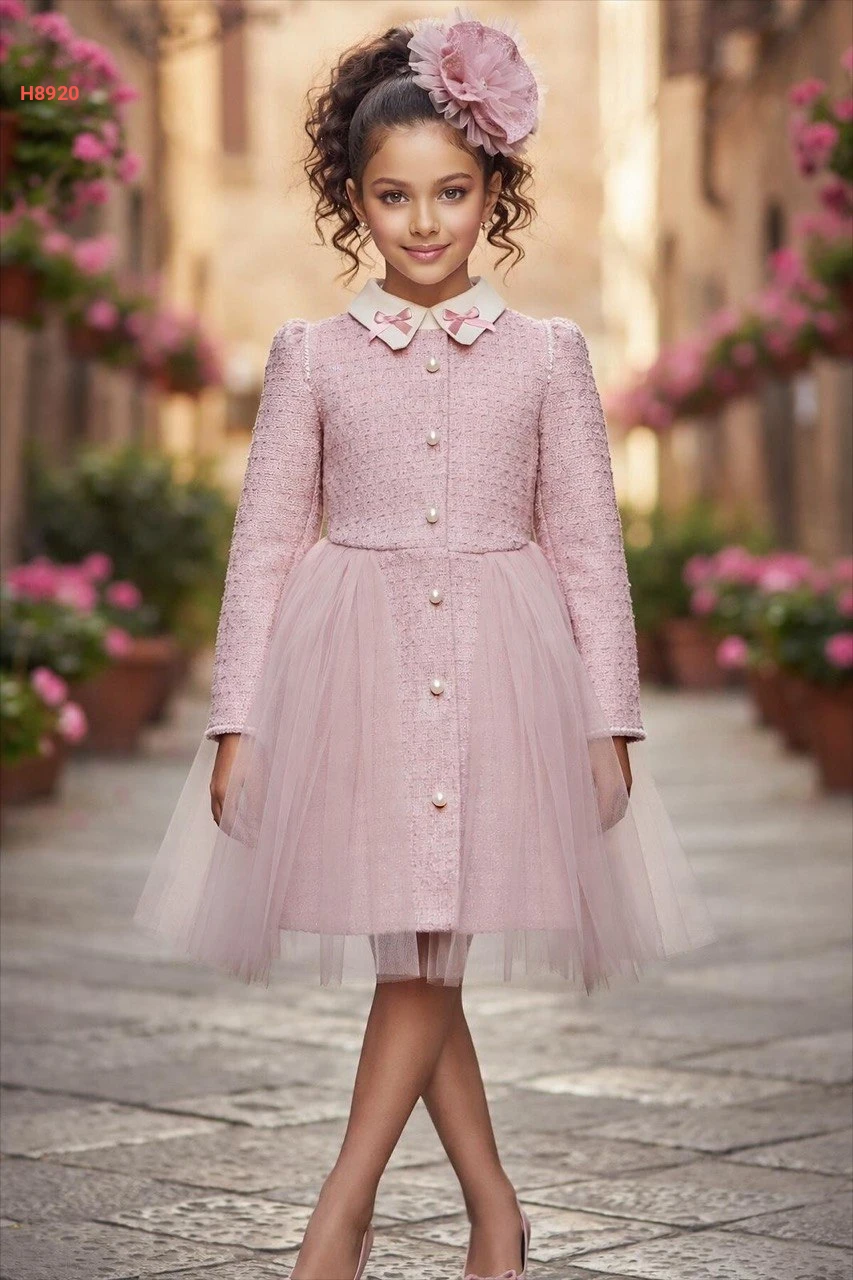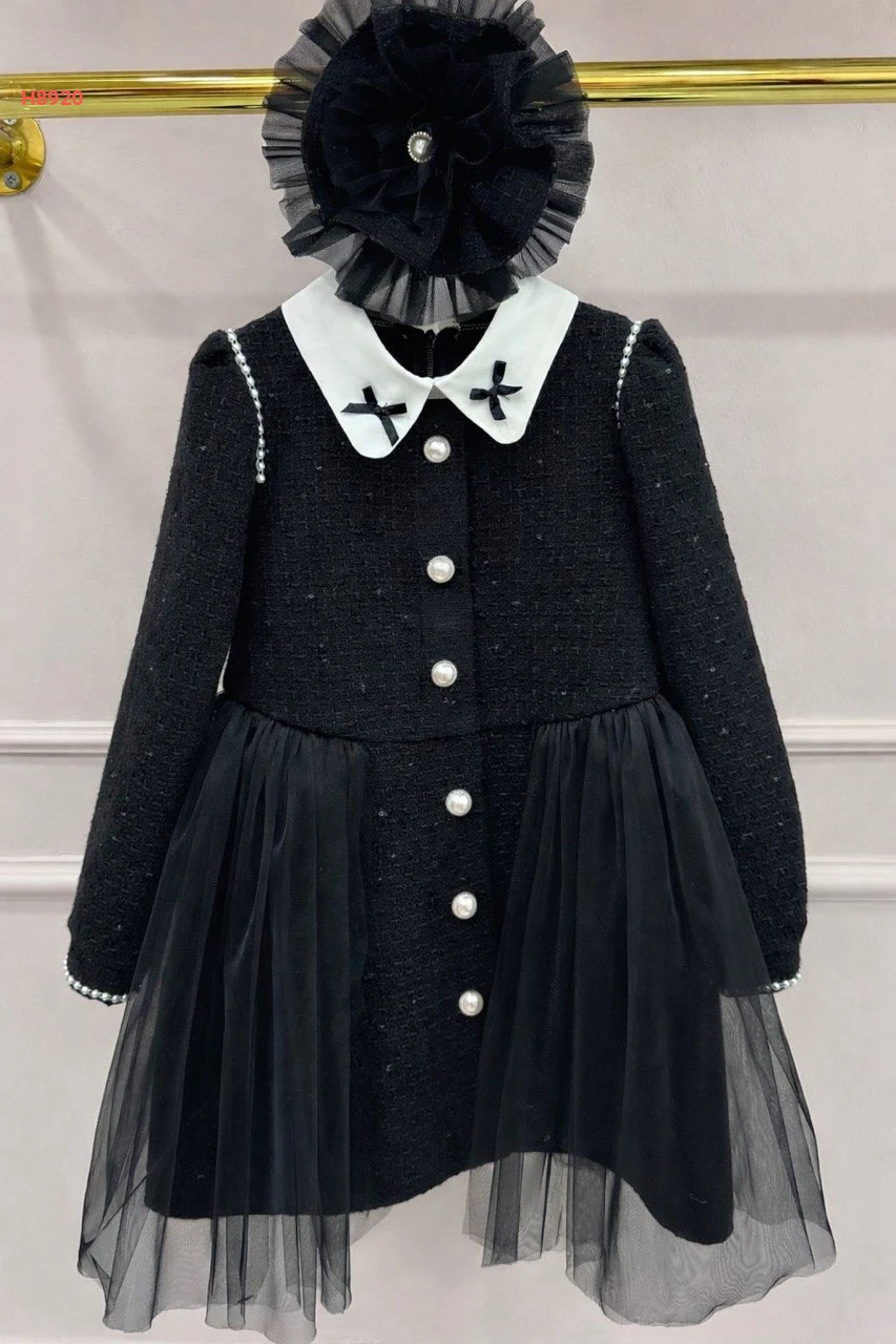 فستان بناتي بأزرار مع تول واكسسوار شعر