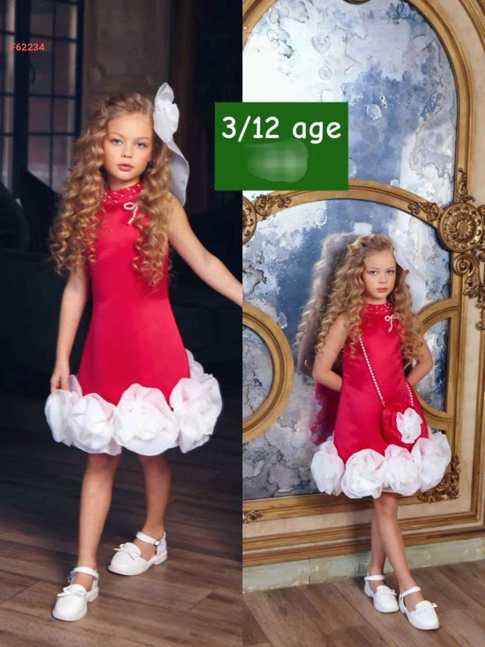 فستان بناتي مورد مع حقيبة