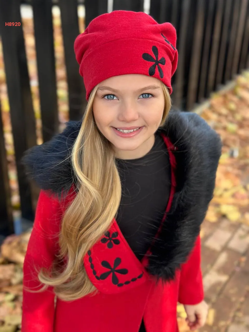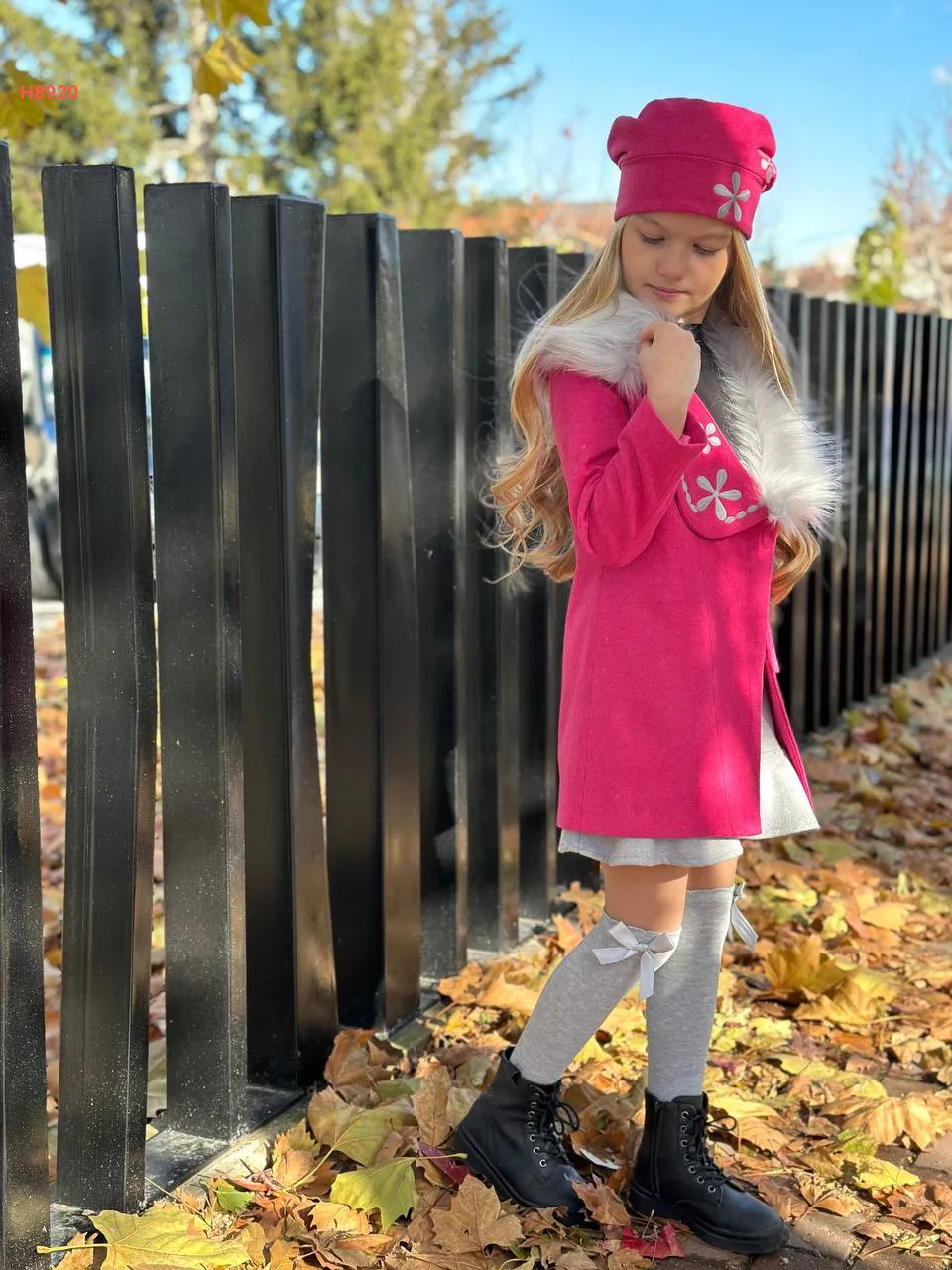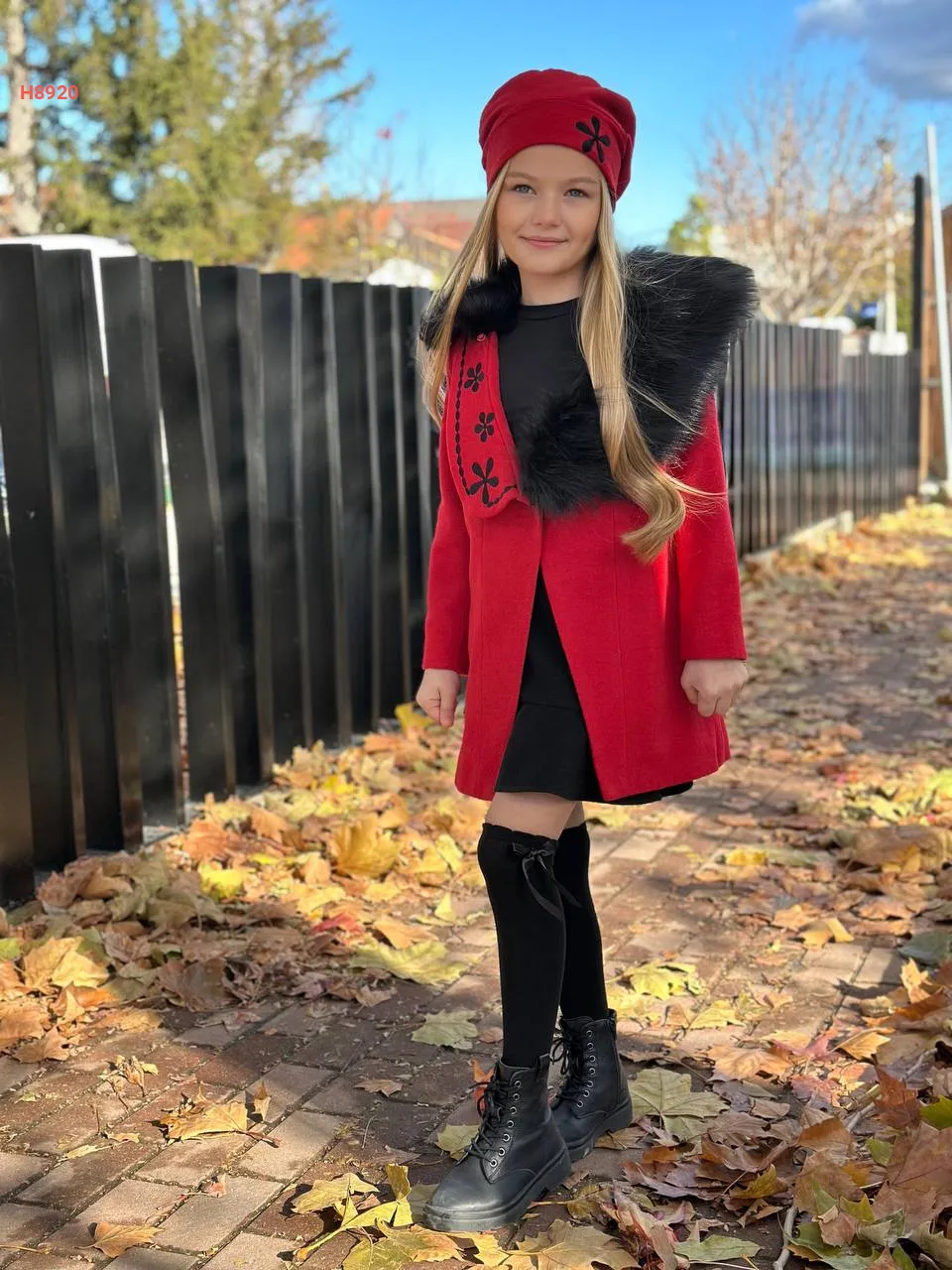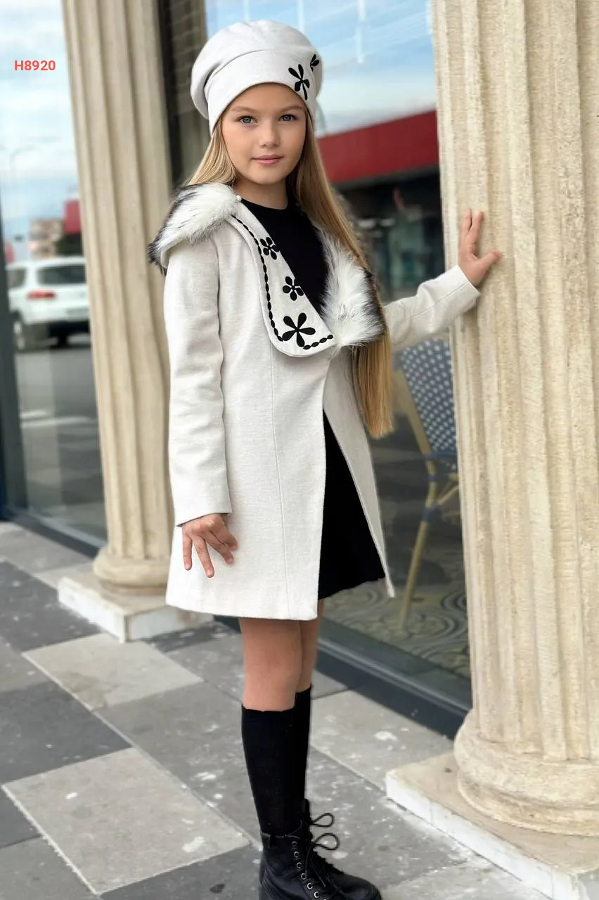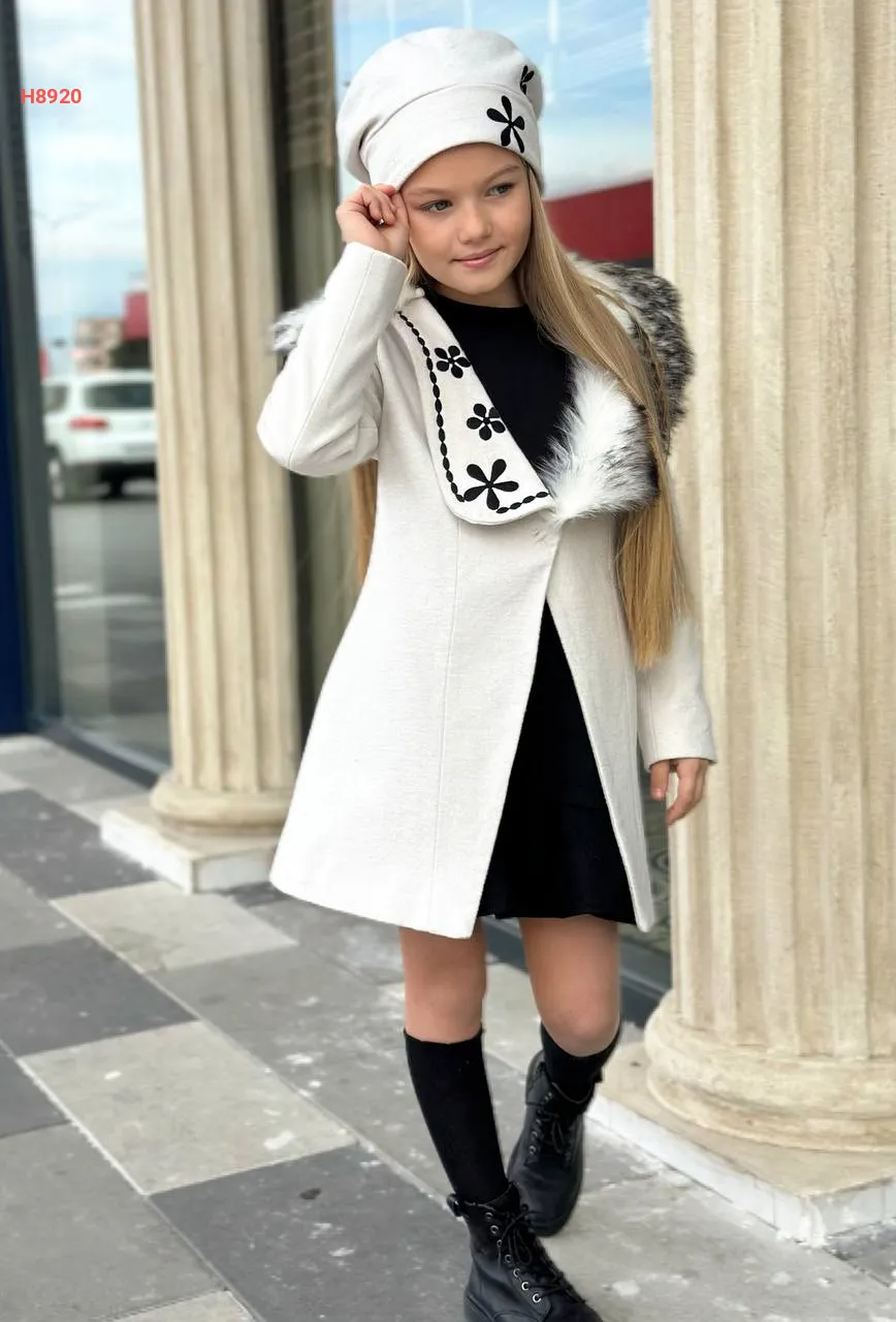 معطف بناتي مطرز مع قبعة
