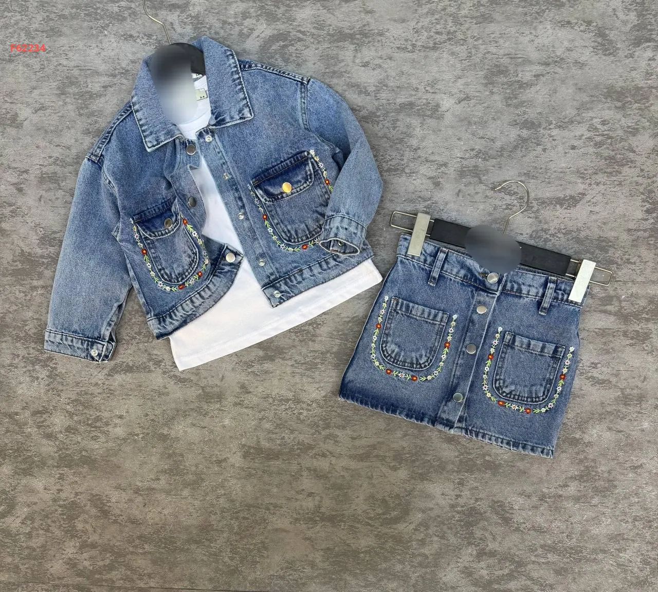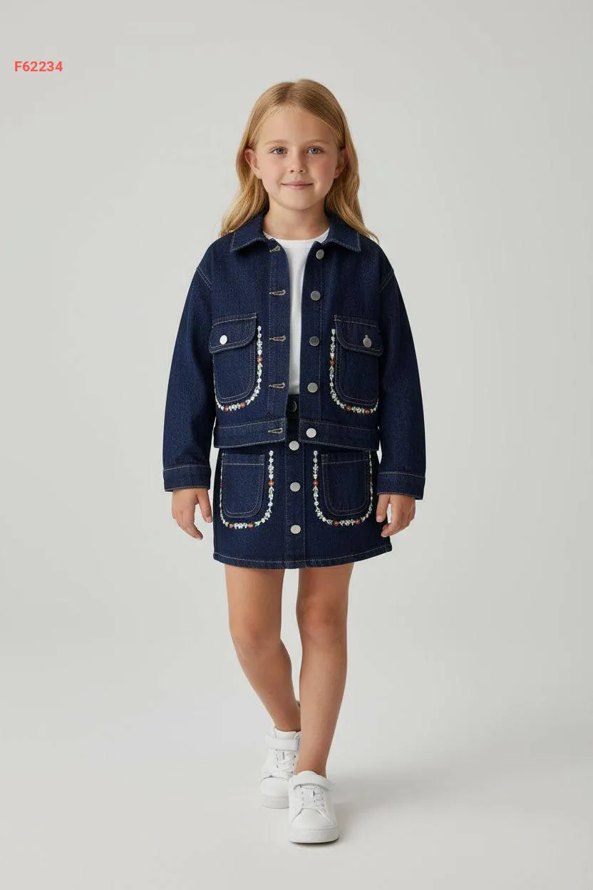 طقم تنورة بناتي جينز مطرز