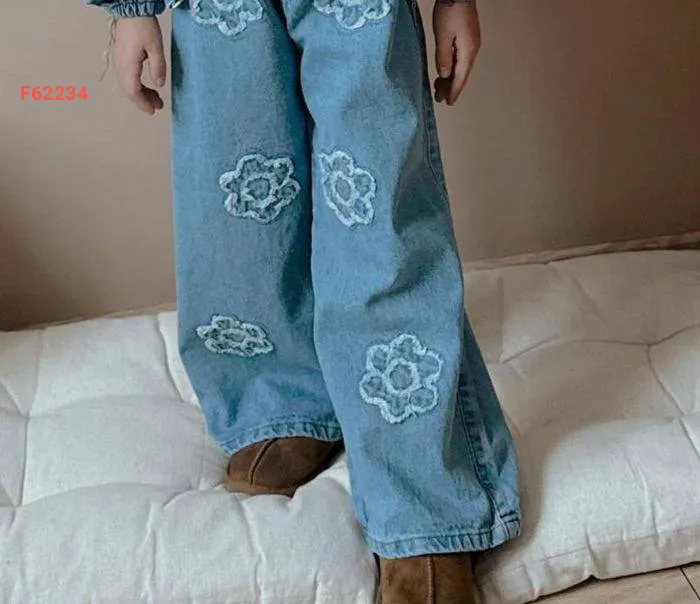 طقم بنطال جينز بناتي مطرز وجاكيت