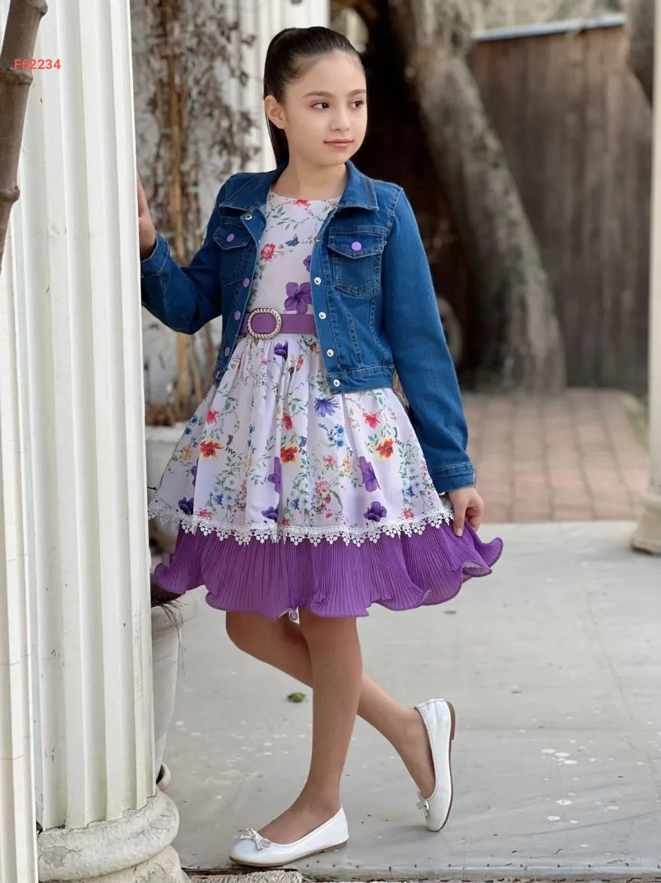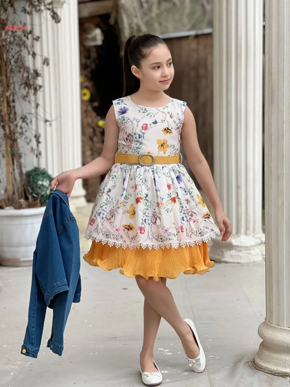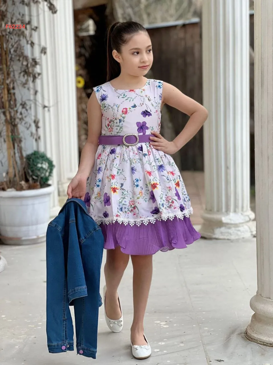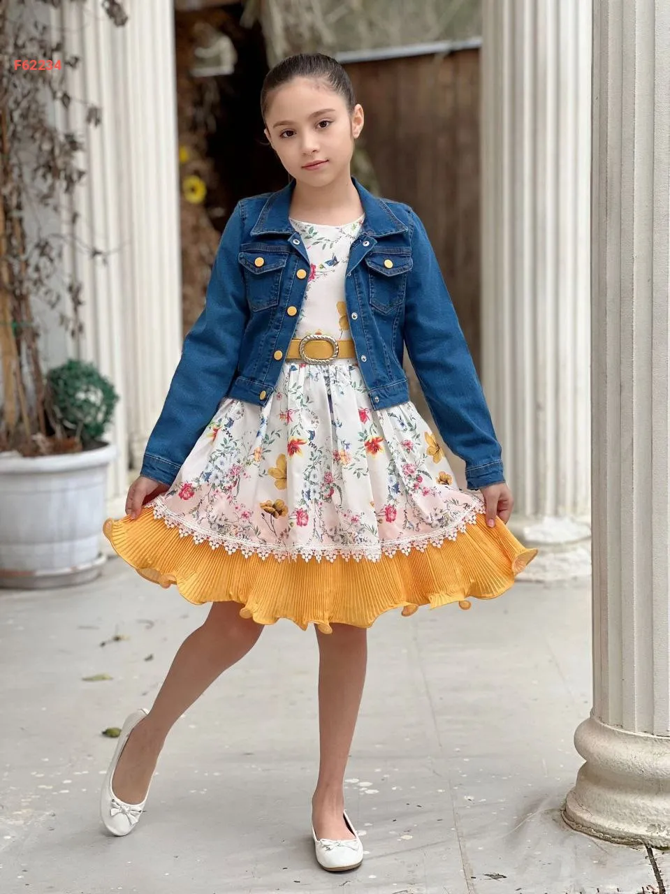 فستان بناتي مورد مع جاكيت جينز