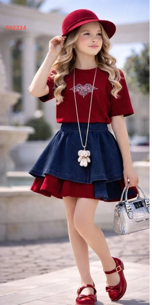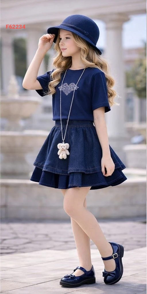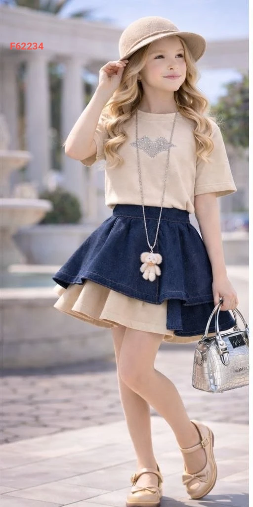 طقم تنورة بناتي كشكش مع قبعة وحقيبة
